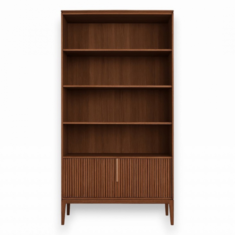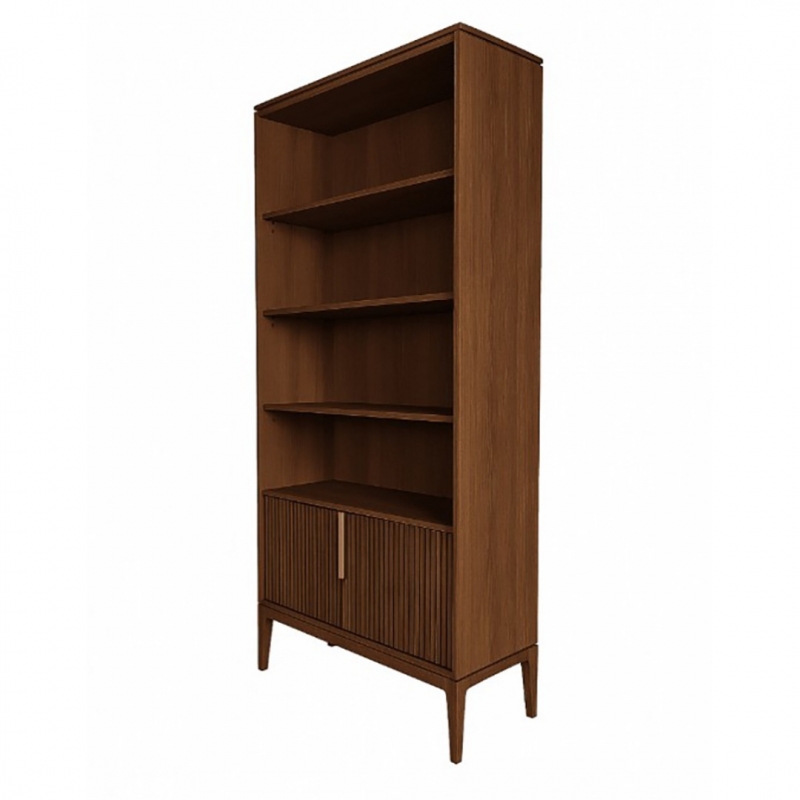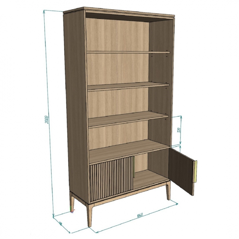 Представительский стеллаж из коллекции Bryce бренда Vissam (арт. 21031.01) выполнен в американском стиле и станет выразительным акцентом в интерьере гостиной. Дизайнерский стеллаж Bryce на высоких ножках оснащен двумя дверцами с доводчиками, обеспечивающими плавное и бесшумное закрывание. Рельефный фасад из вертикальных реек придаёт поверхности визуальный ритм и глубину, подчёркивая современный характер модели.