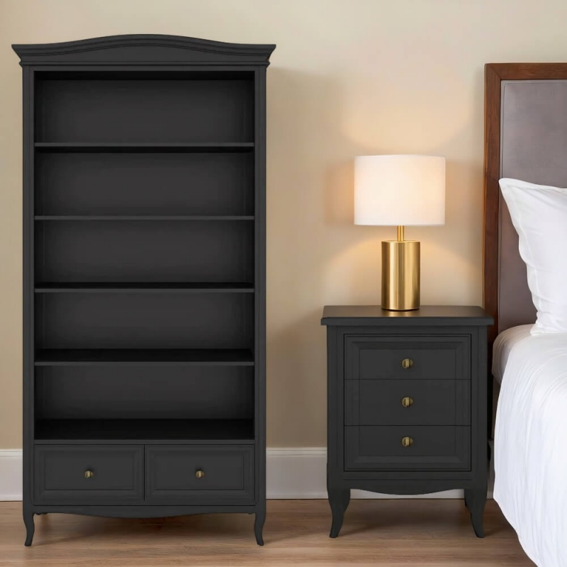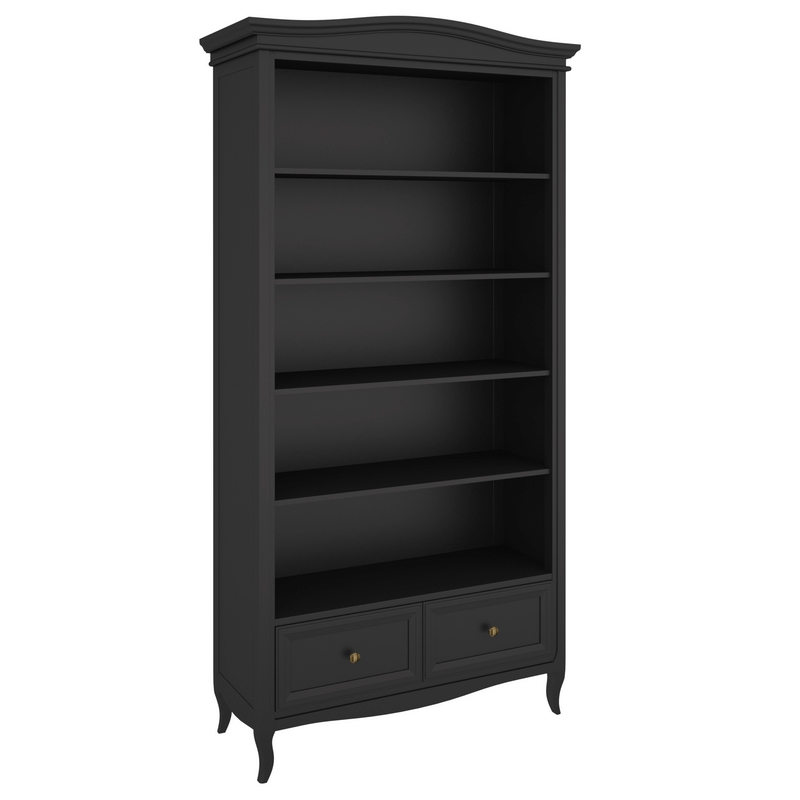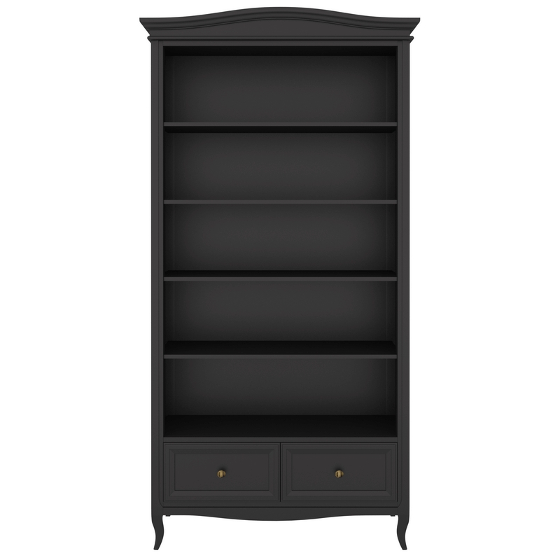 Стеллаж Majessa (Aletan, арт. М606BL) с двумя ящиками, в чёрном цвете — элегантное решение для кабинета в неоклассическом стиле. Идеальный вариант для хранения документов. Витрина Алетан Маджесса изготовлен из массива дерева и МДФ с многослойной эмалевой отделкой, гарантирующей долговечность.