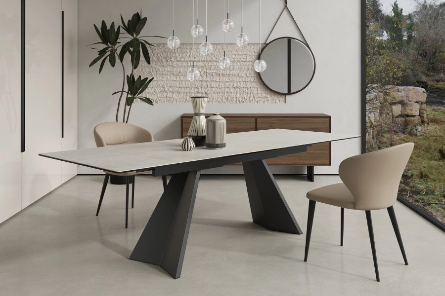 Обеденные столы — центральный элемент серии. Представлены в разных размерах: от компактных моделей 140/180 см для небольших пространств до масштабных раздвижных вариантов длиной до 260 см. Такая вариативность позволяет подобрать решение как для уютных семейных ужинов, так и для приёма больших компаний.