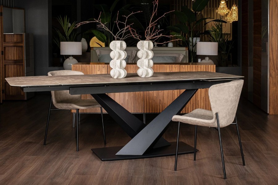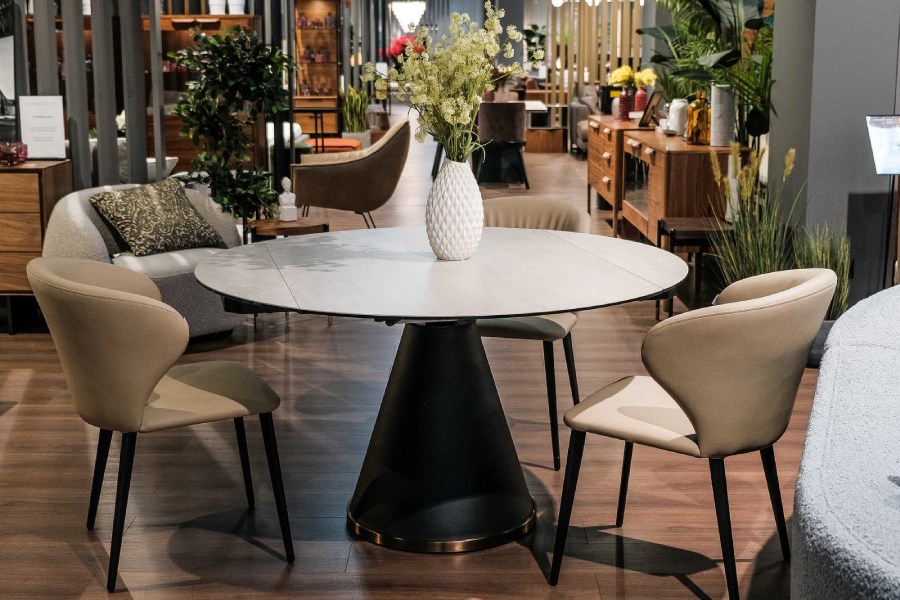 Мебель Toledo не только красива, но и продумана до мелочей. Раздвижные столы позволяют легко менять размер в зависимости от ситуации, приставные столики удобны для зонирования пространства, а консоли могут выполнять сразу несколько функций — от места для декора до рабочей поверхности.