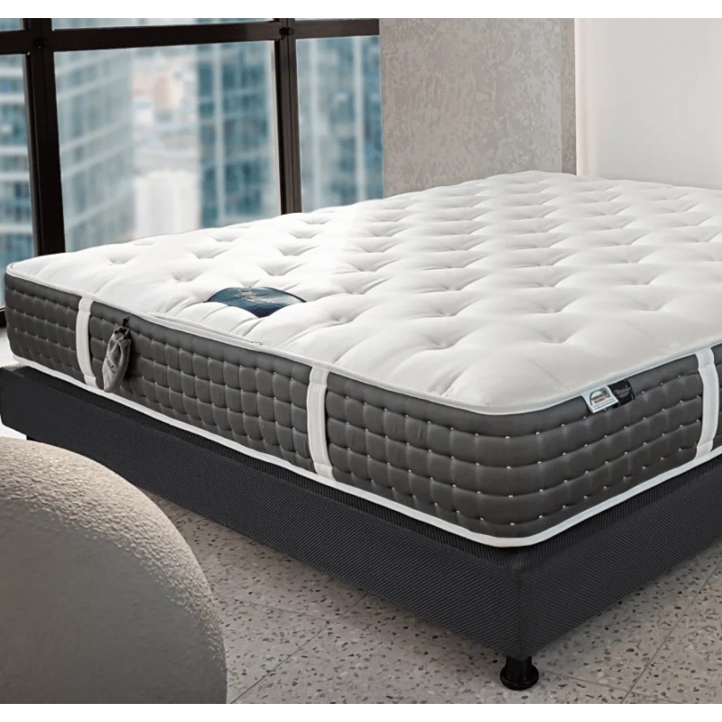 Двуспальный матрас Имперо (Impero) серии VIP от российско-итальянского ателье Materlux представляет собой двусторонний анатомический матрас, который обеспечивает потрясающий комфорт благодаря толстому слою натурального бельгийского латекса (5 см) и тонкому слою латексированного кокоса (1 см). Он собран на уникальном пружинном блоке Мультипакет, что делает его идеальным выбором для тех, кто предпочитает среднюю жесткость с незначительным уклоном в комфортную мягкость.