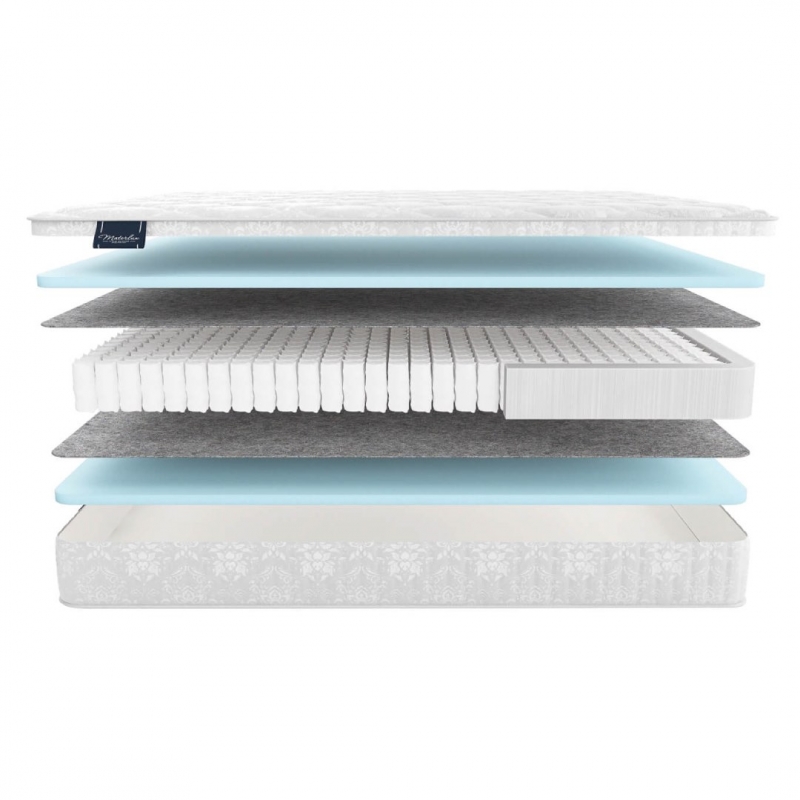 - Термофиксированный фетр — 0,5 см. Снимает трение слоев матраса, плавно распределяет давление от пружин.