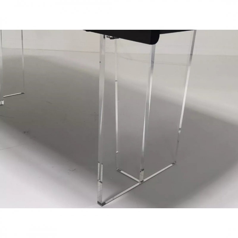 Основание стола выполнено из прозрачного акрила, что создаёт визуальную лёгкость, а металлическая рама серебристо-серого цвета придаёт конструкции устойчивость и долговечность. Стол поставляется в двух коробках для удобства транспортировки.