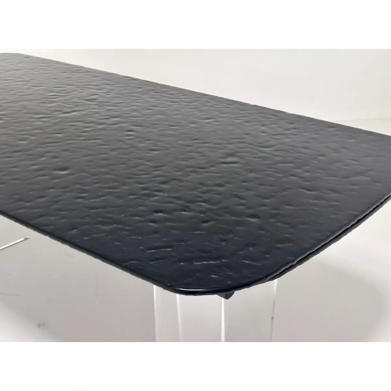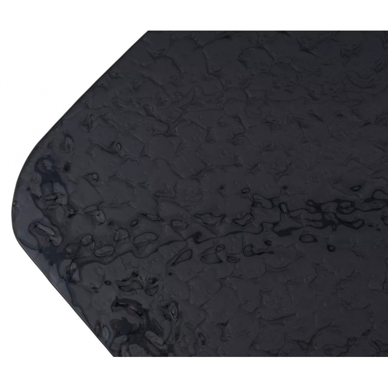 Столешница изготовлена из глянцевого стекла с эффектом Bubble толщиной 12 мм, созданного по уникальной технологии горячего расплавления стекла. Такая поверхность устойчива к царапинам, не впитывает загрязнения, термостойкая и легко очищается. Декор с пузырьковым эффектом придаёт столу выразительность и современный характер.