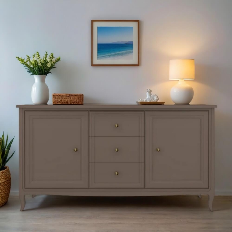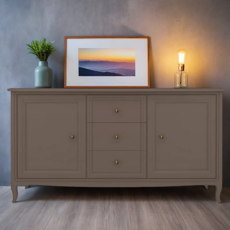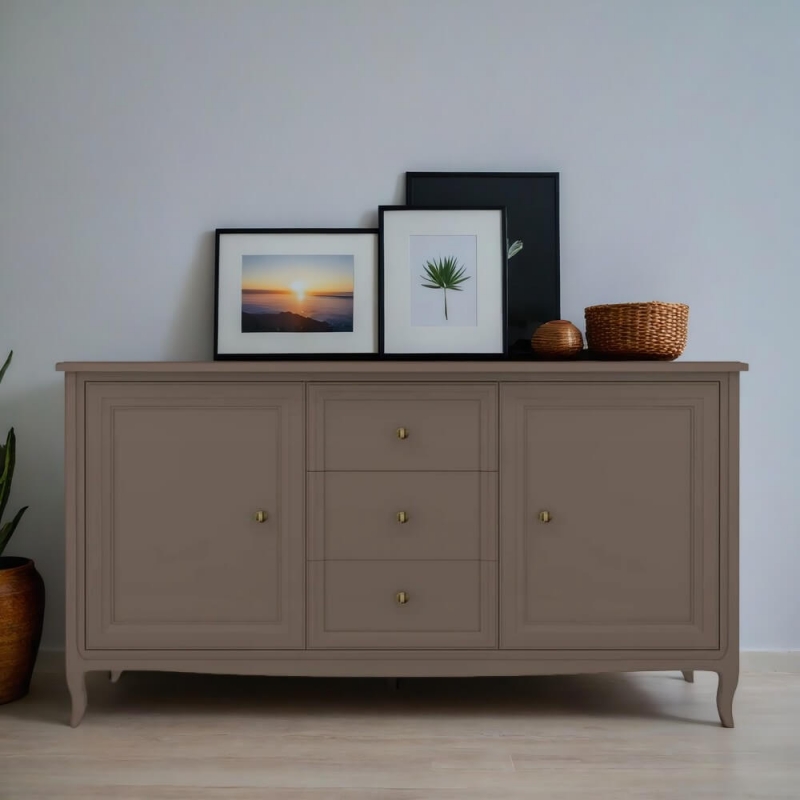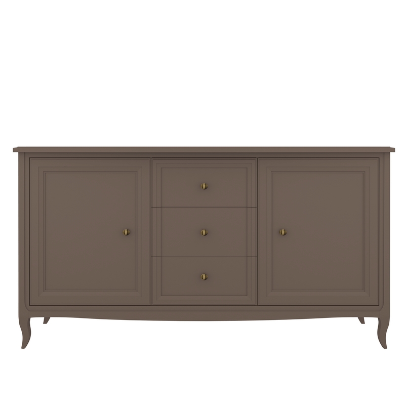 Прилавок Majessa (Aletan, арт. М403Q) с тремя ящиками и двумя дверцами, в коричневом цвете — элегантное решение для гостиной в неоклассическом стиле. Комод Алетан Маджесса изготовлен из массива дерева и МДФ с многослойной эмалевой отделкой, гарантирующей долговечность.