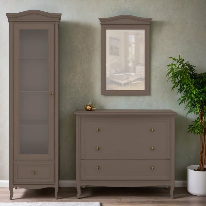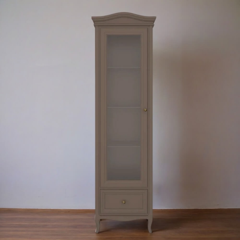 Однодверная витрина в левом исполнении Majessa (Aletan, арт. М601L/Q) с одним ящиком, в коричневом цвете — элегантное решение для гостиной в неоклассическом стиле. Идеальный вариант для хранения посуды или сувениров. Витрина Алетан Маджесса изготовлен из массива дерева и МДФ с многослойной эмалевой отделкой, гарантирующей долговечность.