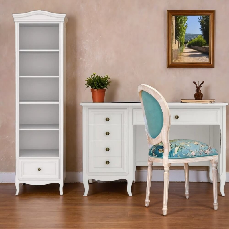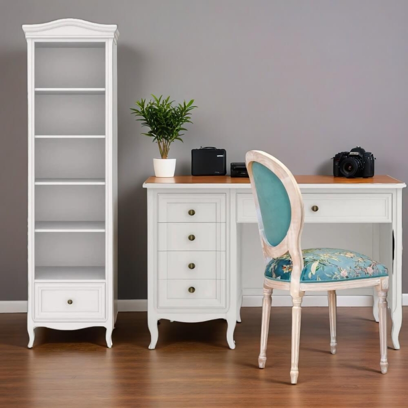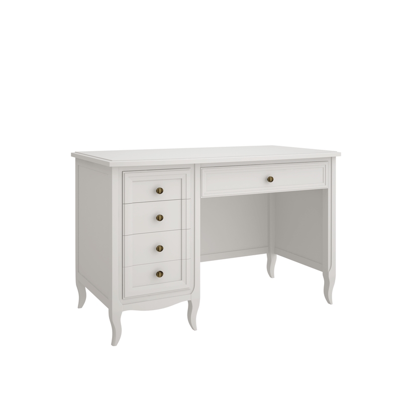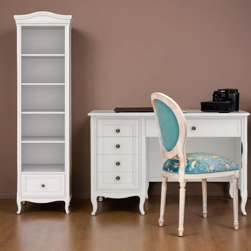 Письменный стол Majessa (Aletan, арт. М705W) с пятью ящиками, в белом цвете — элегантное решение для кабинета в неоклассическом стиле. Стол Алетан Маджесса изготовлен из массива дерева и МДФ с многослойной эмалевой отделкой, гарантирующей долговечность.