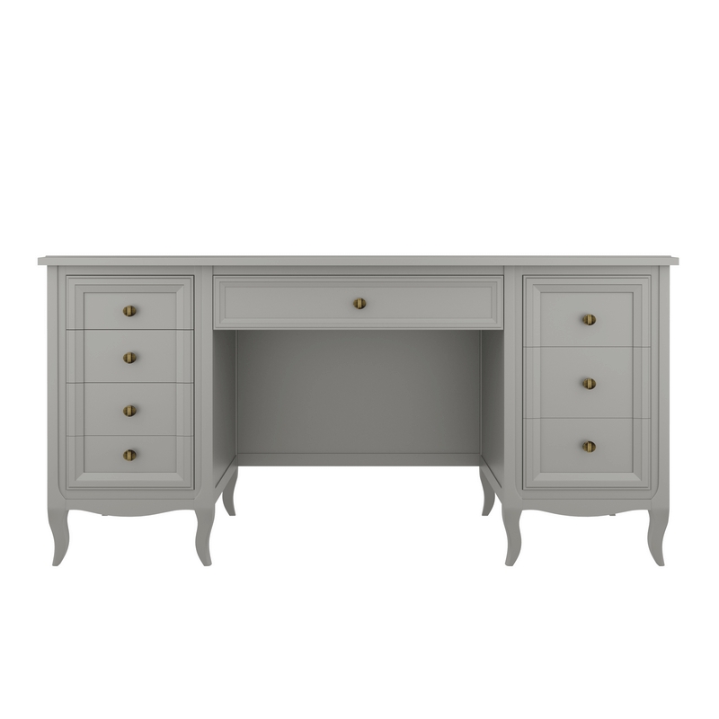 Письменный стол Majessa (Aletan, арт. М709G) с восьмью ящиками, в сером цвете — элегантное решение для кабинета в неоклассическом стиле. Стол Алетан Маджесса изготовлен из массива дерева и МДФ с многослойной эмалевой отделкой, гарантирующей долговечность.