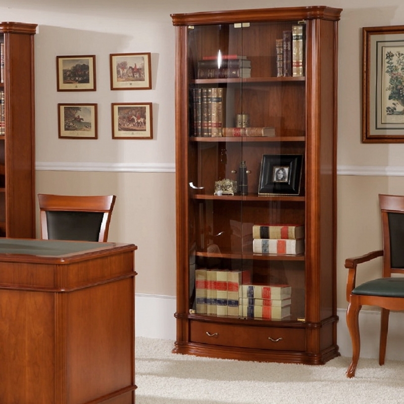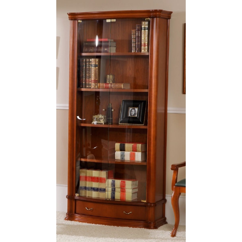 Классический книжный шкаф модели 942, с деревянными полками и двумя стеклянными дверками из коллекции Classic испанской фабрики Disemobel (Диземобель). В библиотеке предусмотрено четыре надежных деревянных полки для хранения книг, альбомов и предметов коллекционирования. От пыли защитят две стеклянные дверки. В нижней части устроен удобный ящик для хранения с доводчиками.