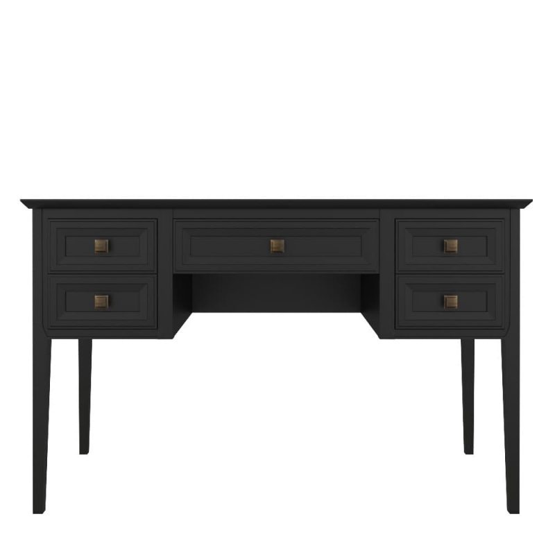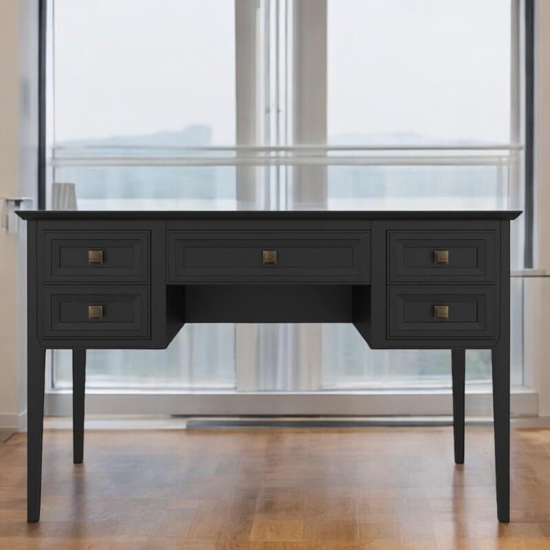 Письменный стол Tesoro (Aletan, арт. T704BL) с пятью ящиками, в чёрном цвете — элегантное решение для кабинета в неоклассическом стиле. Стол Алетан Тесоро изготовлен из массива дерева (бук), МДФ и фанеры (берёза) с многослойной эмалевой отделкой, обеспечивающей долговечность и сохранение привлекательного внешнего вида на долгие годы.
