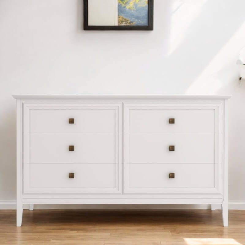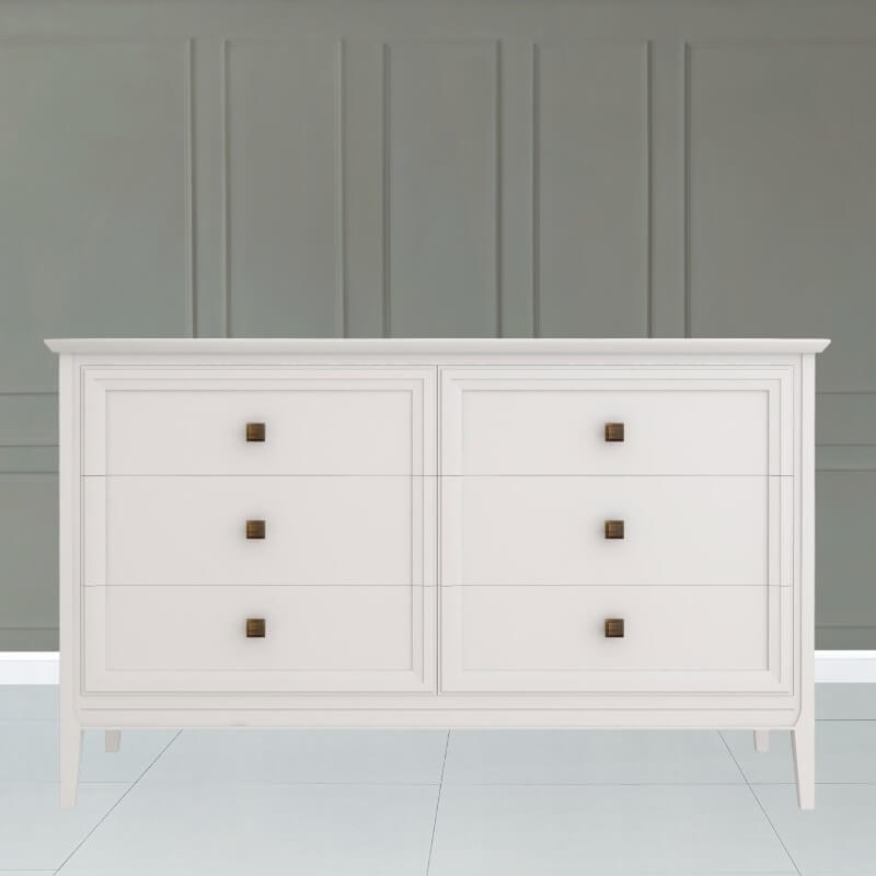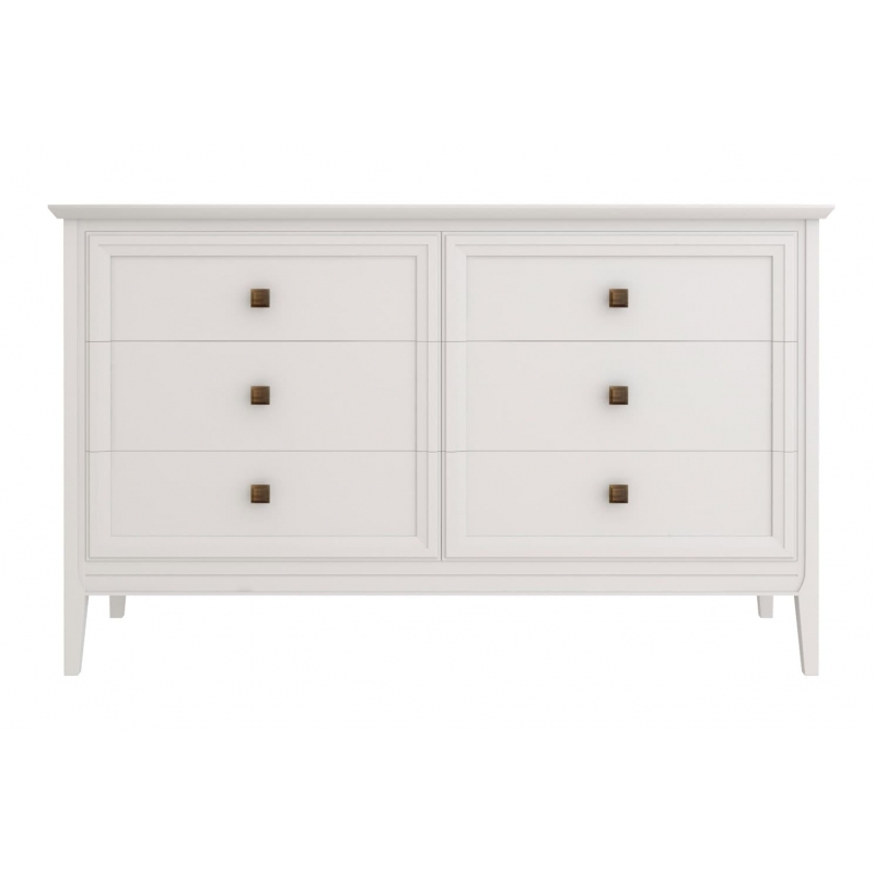 Комод Tesoro (Aletan, арт. T406W) с шестью ящиками, в белом цвете — элегантное решение для спальни в неоклассическом стиле. Комод Алетан Тесоро изготовлен из массива дерева (бук), МДФ и фанеры (берёза) с многослойной эмалевой отделкой, обеспечивающей долговечность и сохранение привлекательного внешнего вида на долгие годы.