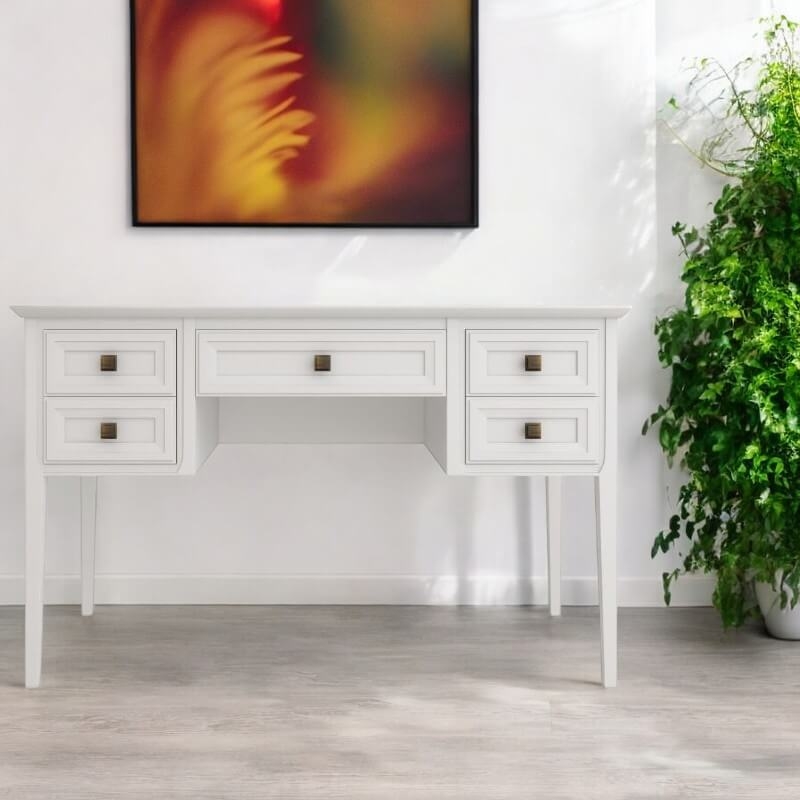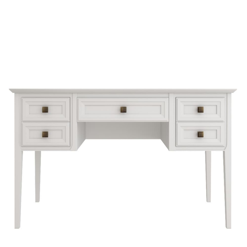 Письменный стол Tesoro (Aletan, арт. T702W) с пятью ящиками, в белом цвете — элегантное решение для кабинета в неоклассическом стиле. Стол Алетан Тесоро изготовлен из массива дерева (бук), МДФ и фанеры (берёза) с многослойной эмалевой отделкой, обеспечивающей долговечность и сохранение привлекательного внешнего вида на долгие годы.