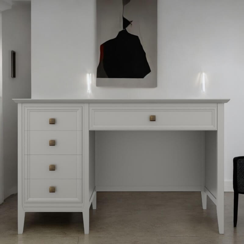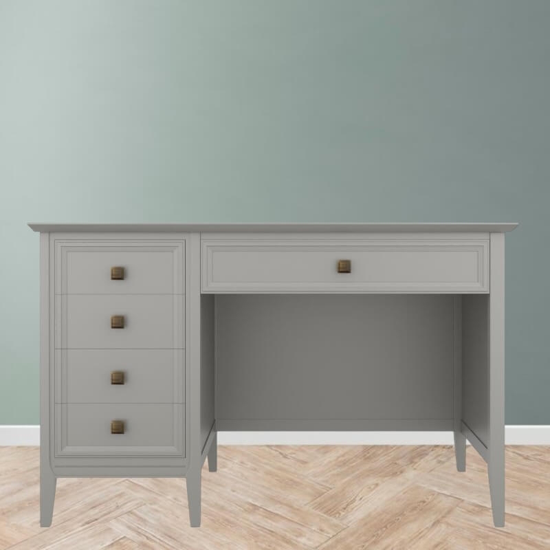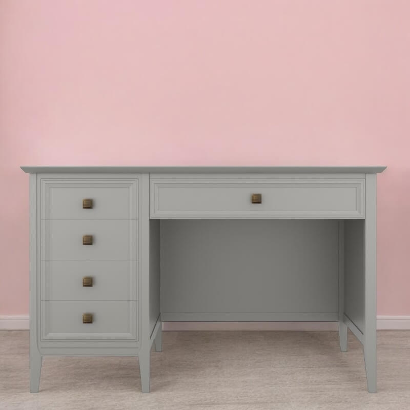 Письменный стол Tesoro (Aletan, арт. T705W) с пятью ящиками, в сером цвете — элегантное решение для кабинета в неоклассическом стиле. Стол Алетан Тесоро изготовлен из массива дерева (бук), МДФ и фанеры (берёза) с многослойной эмалевой отделкой, обеспечивающей долговечность и сохранение привлекательного внешнего вида на долгие годы.