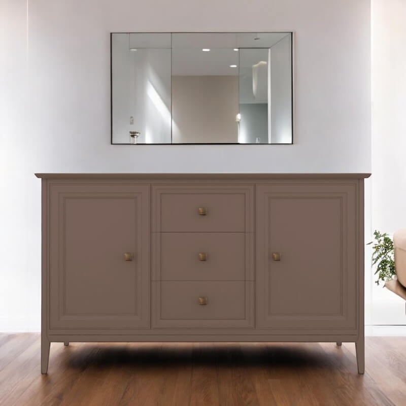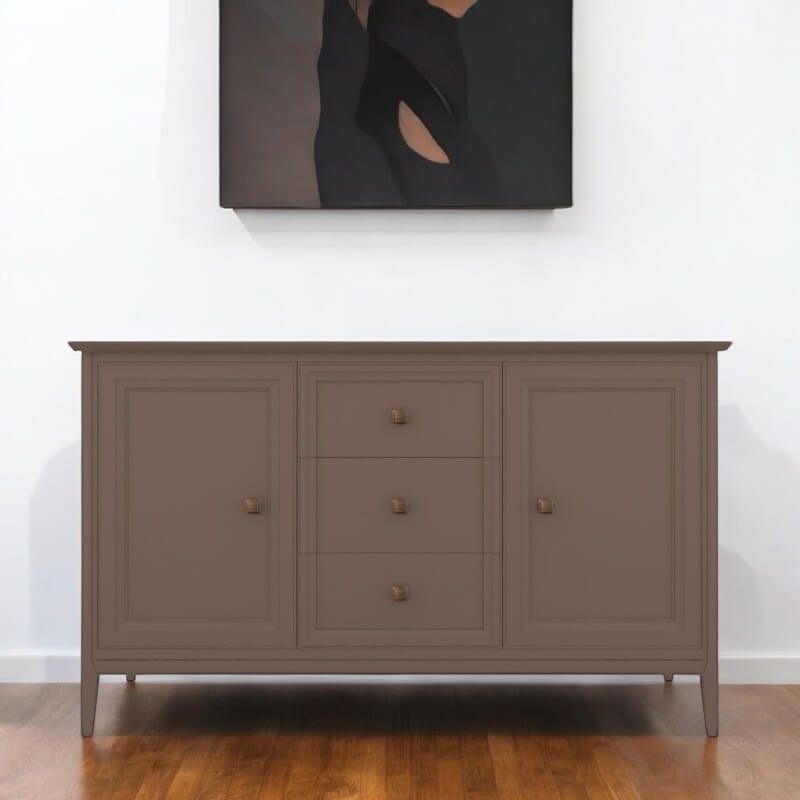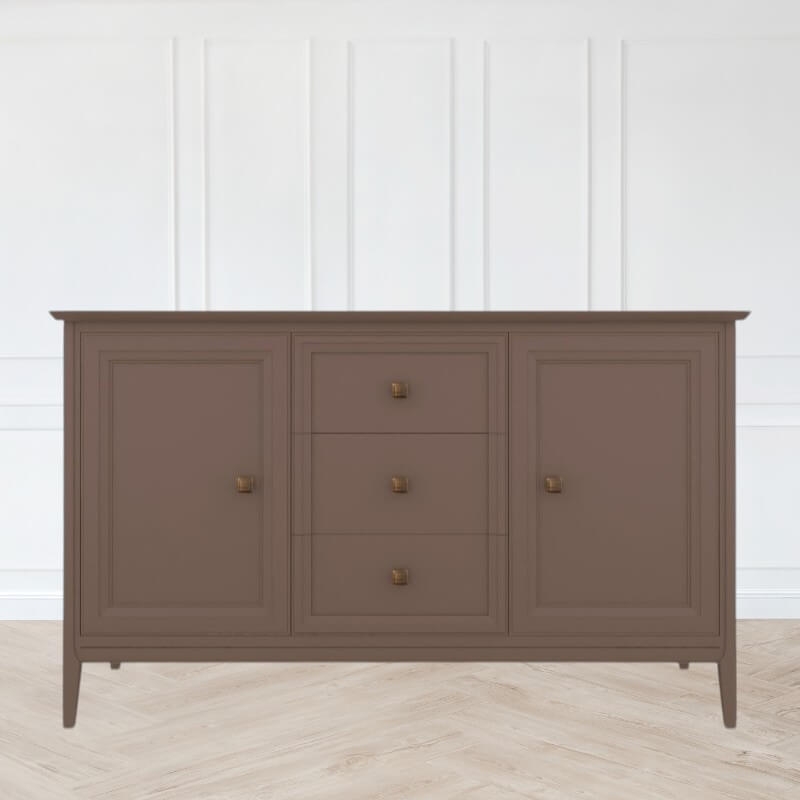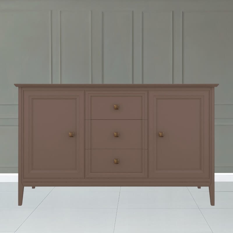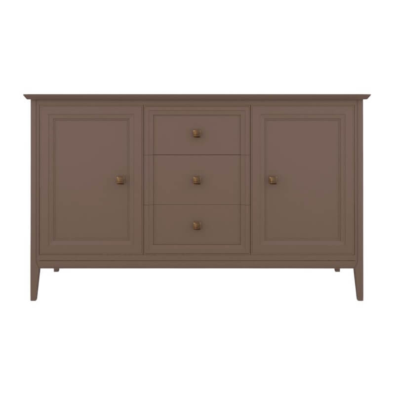 Прилавок Tesoro (Aletan, арт. T403Q) с тремя ящиками и двумя дверцами, в коричневом цвете — элегантное решение для гостиной в неоклассическом стиле. Комод Алетан Тесоро изготовлен из массива дерева и МДФ с многослойной эмалевой отделкой, гарантирующей долговечность.