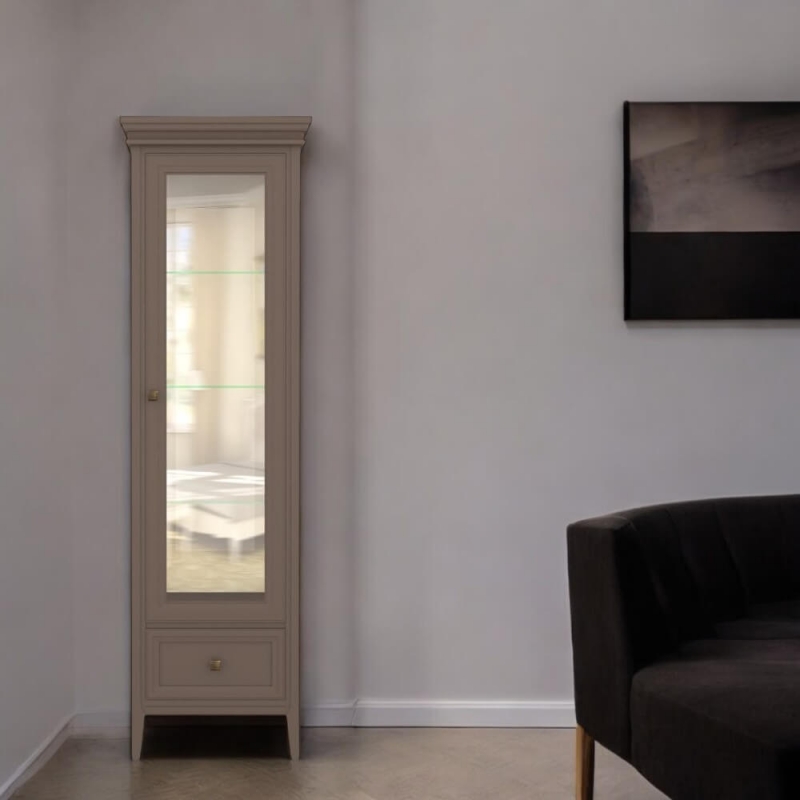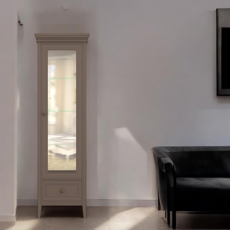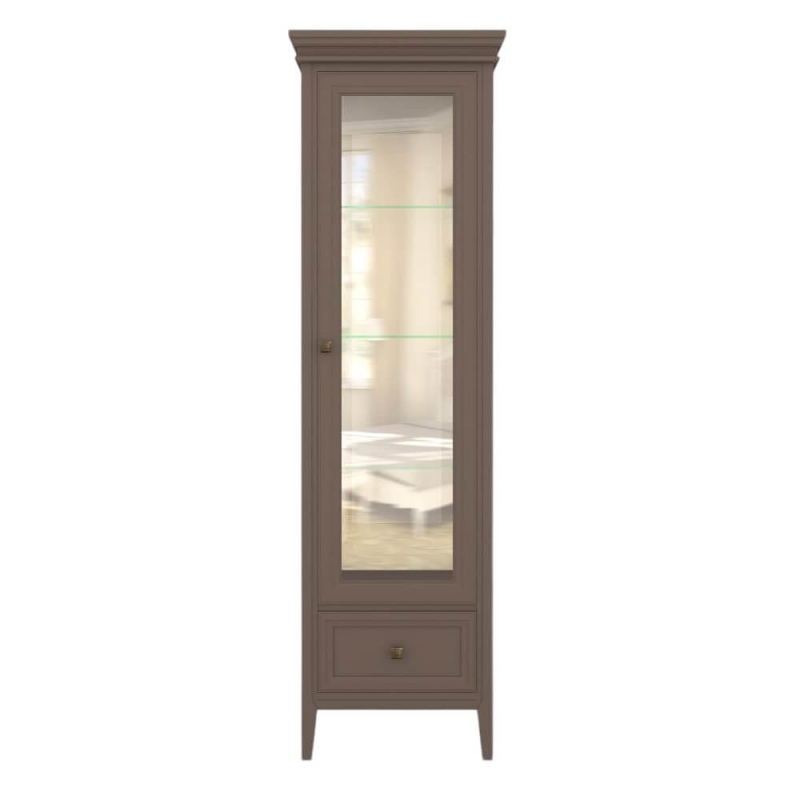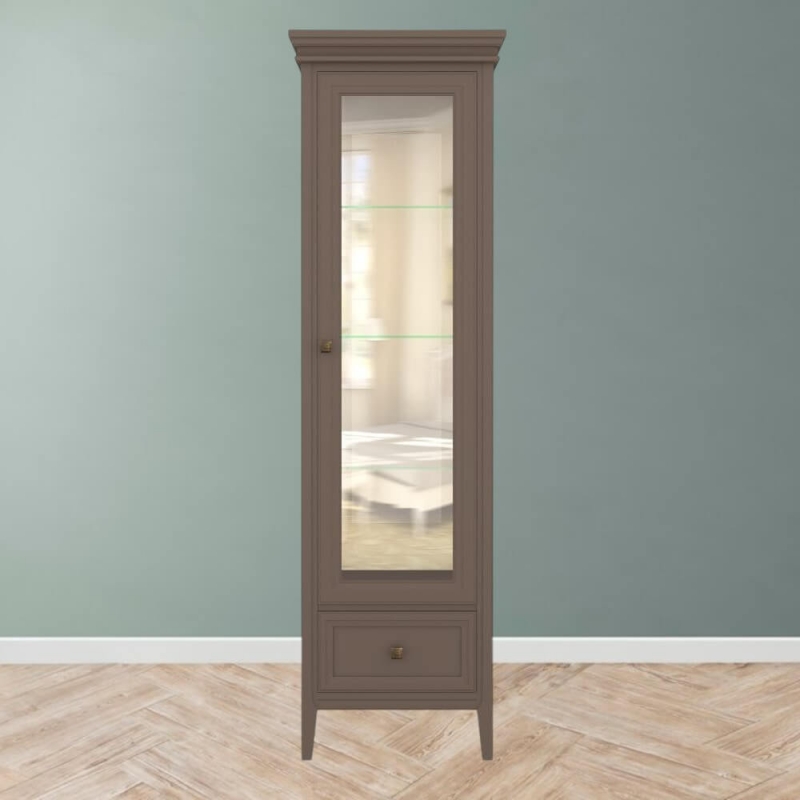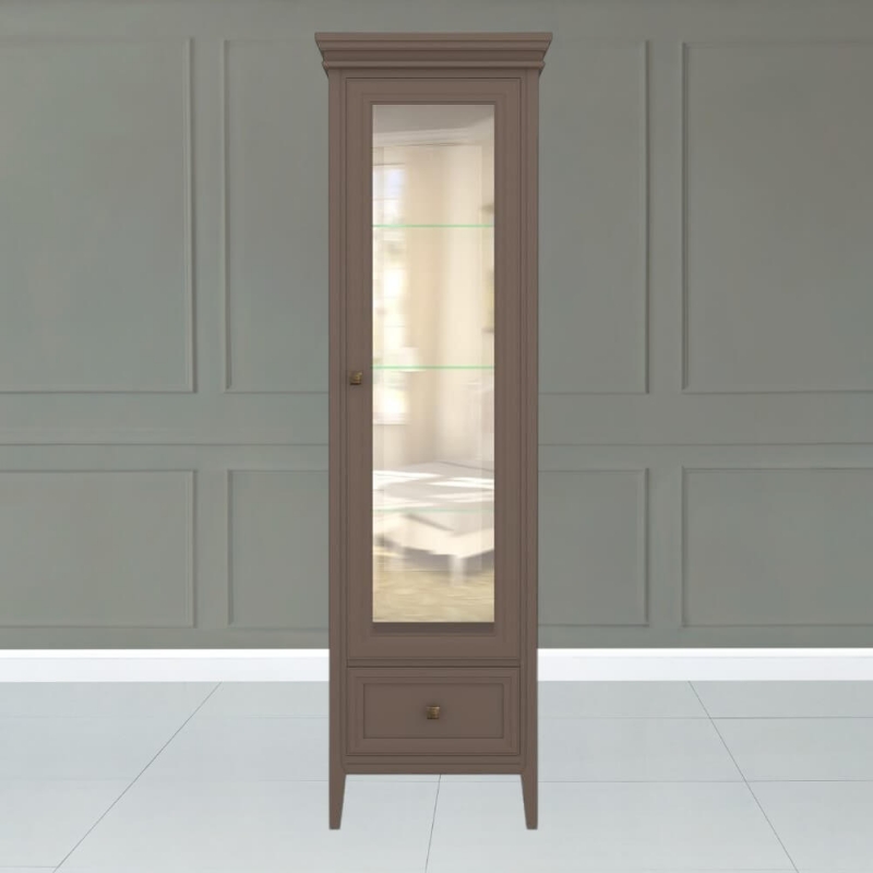 Однодверная витрина в левом исполнении Tesoro (Aletan, арт. T601L/Q) с одним ящиком, в коричневом цвете — элегантное решение для гостиной в неоклассическом стиле. Идеальный вариант для хранения посуды или сувениров. Витрина Алетан Тесоро изготовлена из массива дерева (бук), МДФ и фанеры (берёза) с многослойной эмалевой отделкой, обеспечивающей долговечность и сохранение привлекательного внешнего вида на долгие годы.