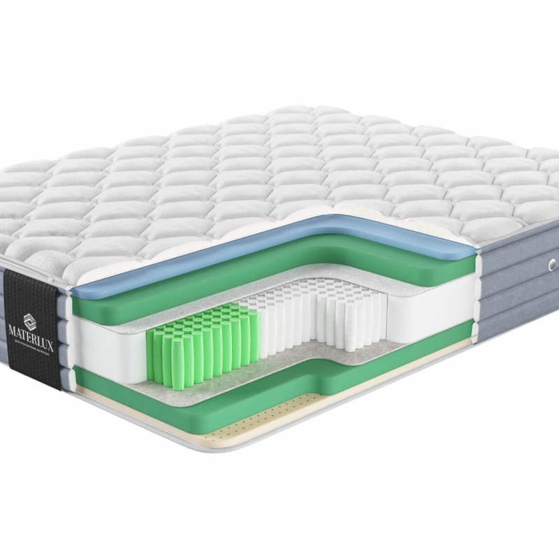 Двухсторонний матрас фабрики MaterLux, модель Babila серии Elite, с двумя слоями ЭЛАКС EHR, слоем пены Memory Foam и натурального латекса, все это собрано на блоке независимых пружин Мультипакет (1040 пружин на место).