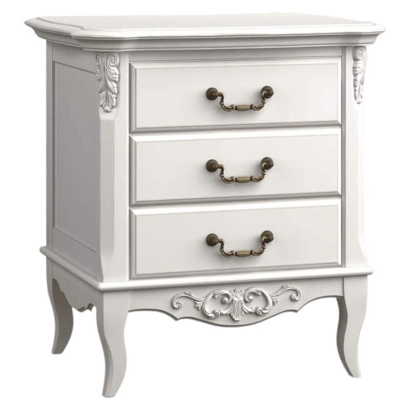 " ["description_short"]=> string(987) "Прикроватная тумба Marlette (Aletan, арт. В303) с тремя ящиками — изящное решение для спальни в классическом или провансальском стиле. Модель сочетает в себе утончённый дизайн и практичность, создавая уютную и гармоничную атмосферу в интерьере. Тумба изготовлена из массива бука, МДФ и берёзовой фанеры, что обеспечивает прочность конструкции и долгий срок службы. Многослойная эмалевая отделка в цвете слоновой кости (RAL 9010) придаёт изделию благородный внешний вид и защищает поверхность от внешних воздействий.