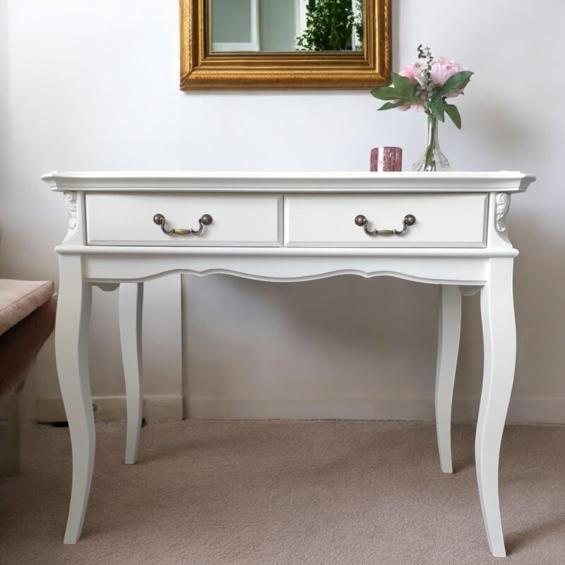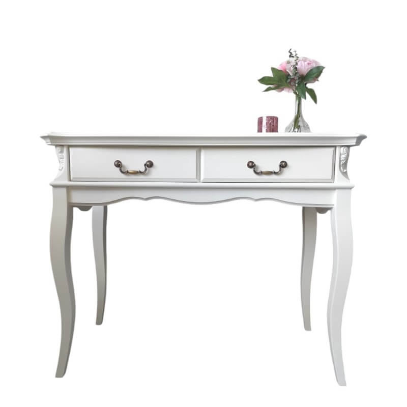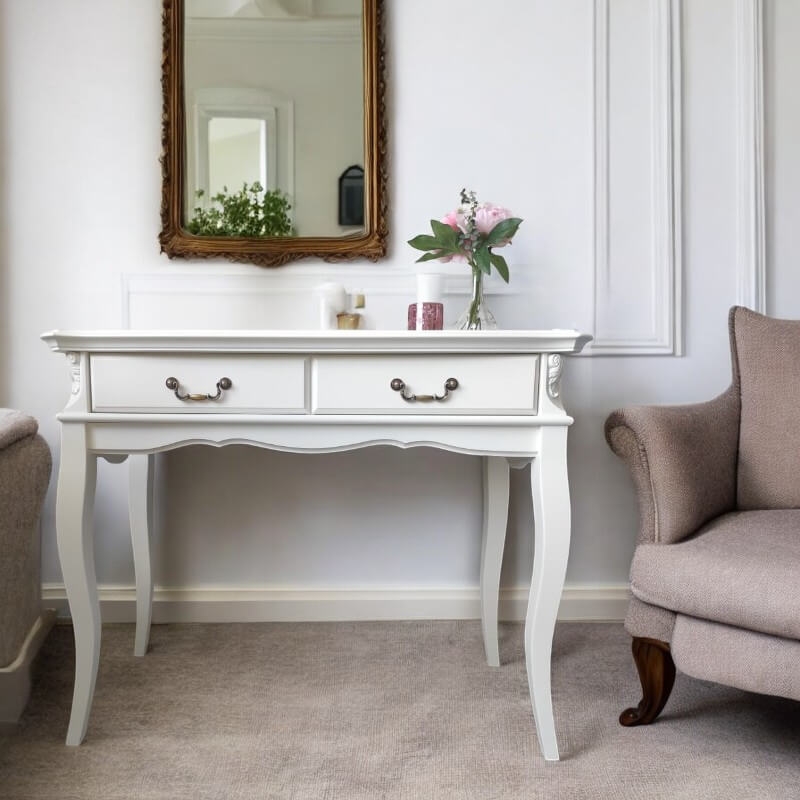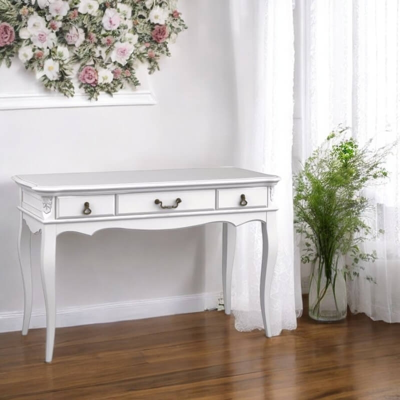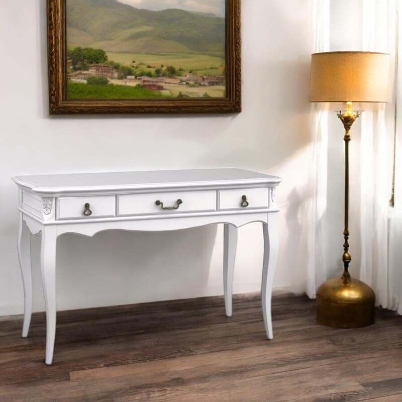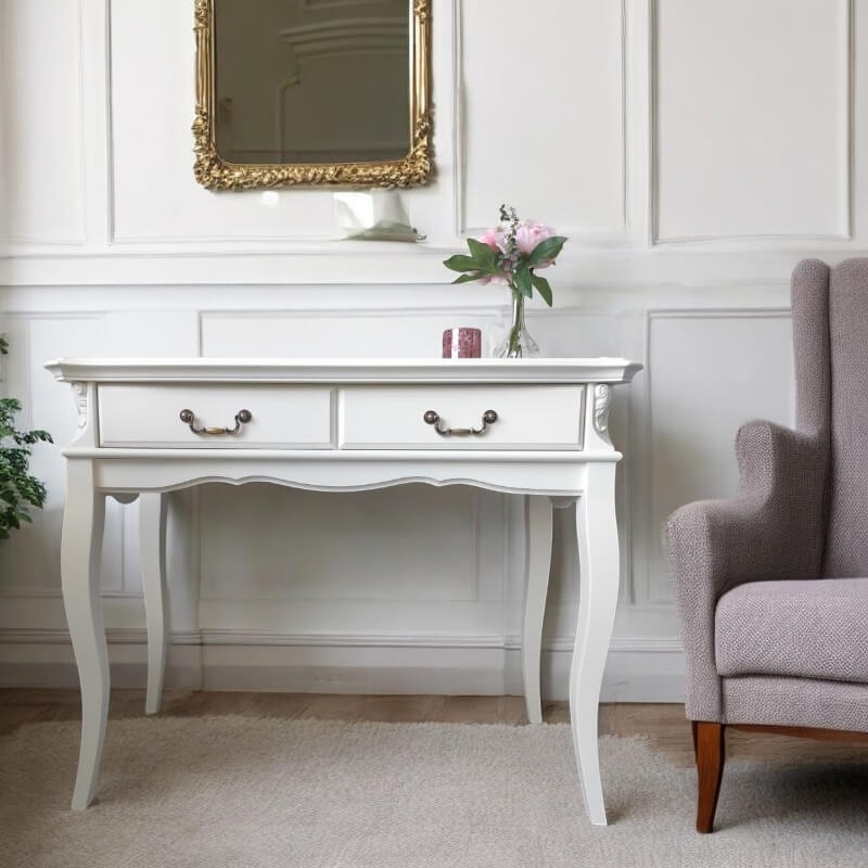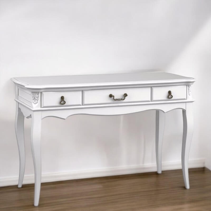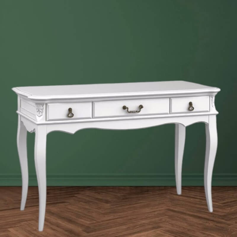 Консоль Marlette (Aletan, арт. В903) с тремя ящиками — изящное решение для вашего интерьера в классическом или провансальском стиле. Модель сочетает в себе утончённый дизайн и практичность, создавая уютную и гармоничную атмосферу в интерьере. Консоль изготовлена из массива бука, МДФ и берёзовой фанеры, что обеспечивает прочность конструкции и долгий срок службы. Многослойная эмалевая отделка в цвете слоновой кости (RAL 9010) придаёт изделию благородный внешний вид и защищает поверхность от внешних воздействий.