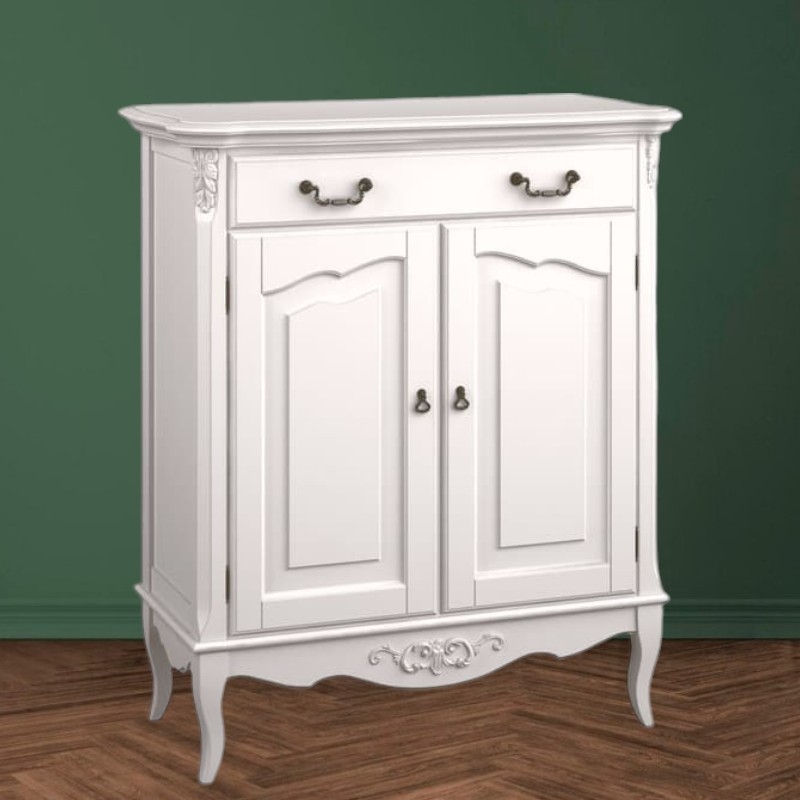 Комод Marlette (Aletan, арт. В404) с одним ящиком и двумя дверцами — изящное решение для спальни в классическом или провансальском стиле. Модель сочетает в себе утончённый дизайн и практичность, создавая уютную и гармоничную атмосферу в интерьере. Комод изготовлена из массива бука, МДФ и берёзовой фанеры, что обеспечивает прочность конструкции и долгий срок службы. Многослойная эмалевая отделка в цвете слоновой кости (RAL 9010) придаёт изделию благородный внешний вид и защищает поверхность от внешних воздействий.