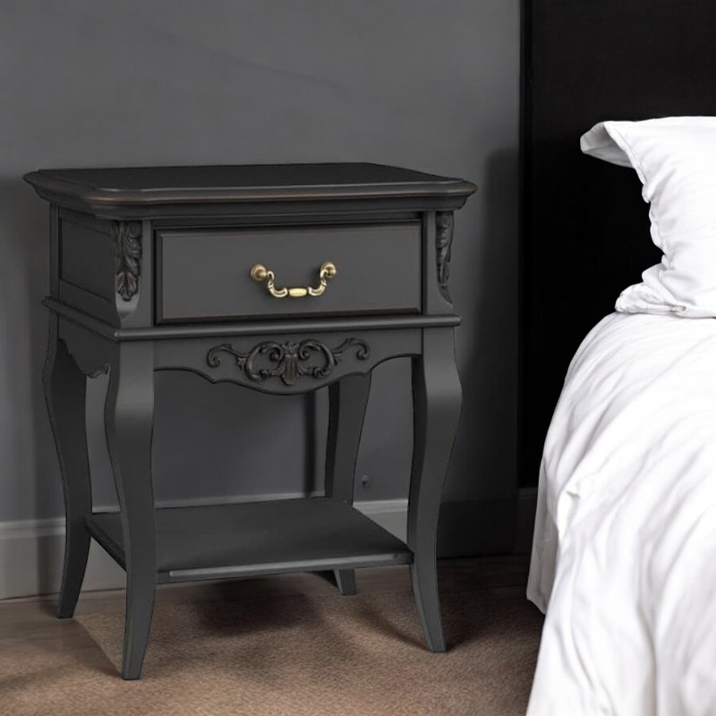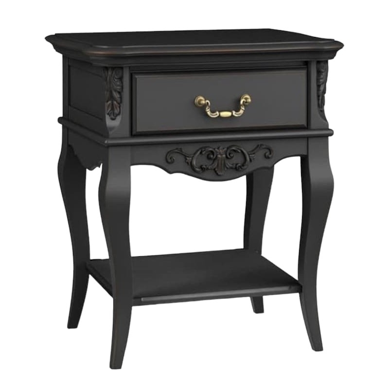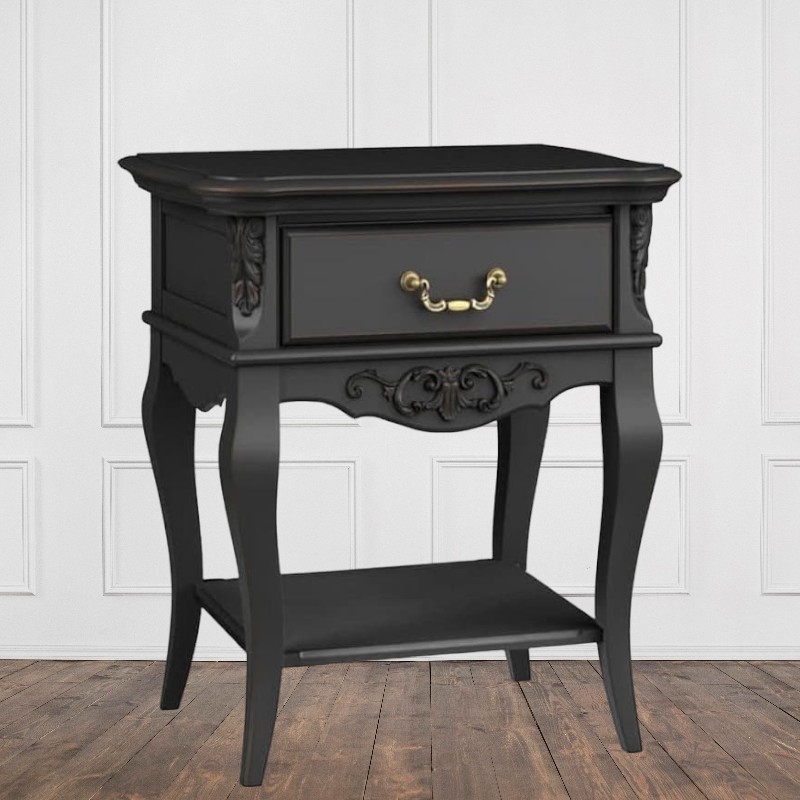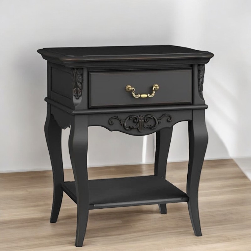 " ["description_short"]=> string(972) "Прикроватная тумба Marlette (Aletan, арт. В301BL) с одним ящиком — изящное решение для спальни в классическом или провансальском стиле. Модель сочетает в себе утончённый дизайн и практичность, создавая уютную и гармоничную атмосферу в интерьере. Тумба изготовлена из массива бука, МДФ и берёзовой фанеры, что обеспечивает прочность конструкции и долгий срок службы. Многослойная эмалевая отделка в черном цвете (RAL 9005) придаёт изделию благородный внешний вид и защищает поверхность от внешних воздействий.