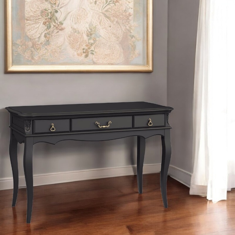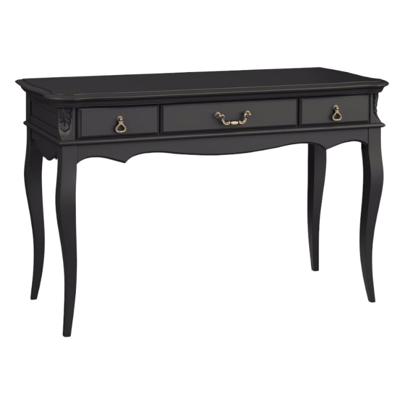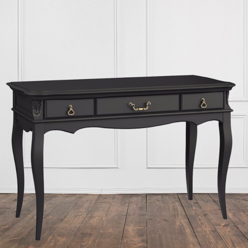 Консоль Marlette (Aletan, арт. В903BL) с тремя ящиками — изящное решение для вашего интерьера в классическом или провансальском стиле. Модель сочетает в себе утончённый дизайн и практичность, создавая уютную и гармоничную атмосферу в интерьере. Консоль изготовлена из массива бука, МДФ и берёзовой фанеры, что обеспечивает прочность конструкции и долгий срок службы. Многослойная эмалевая отделка в черном цвете (RAL 9005) придаёт изделию благородный внешний вид и защищает поверхность от внешних воздействий.