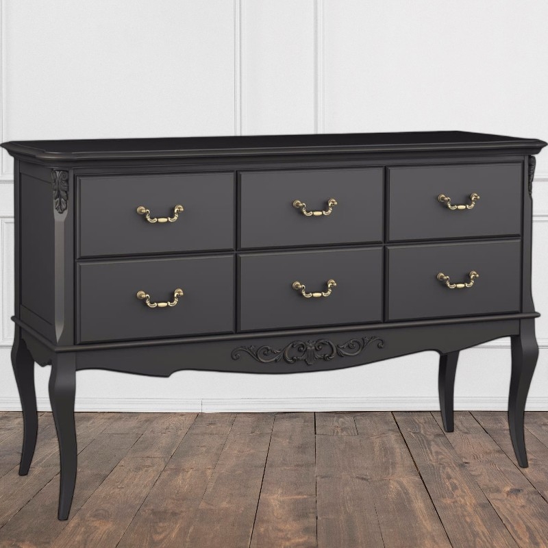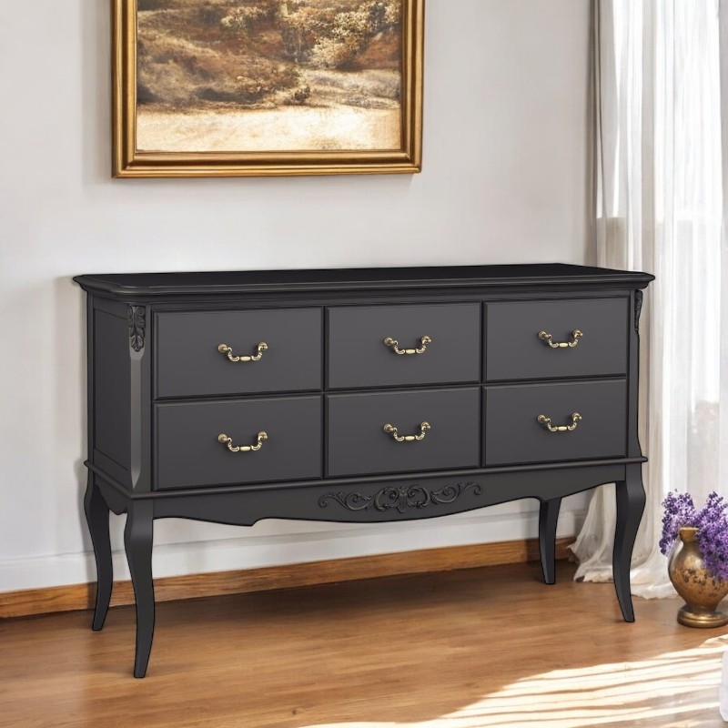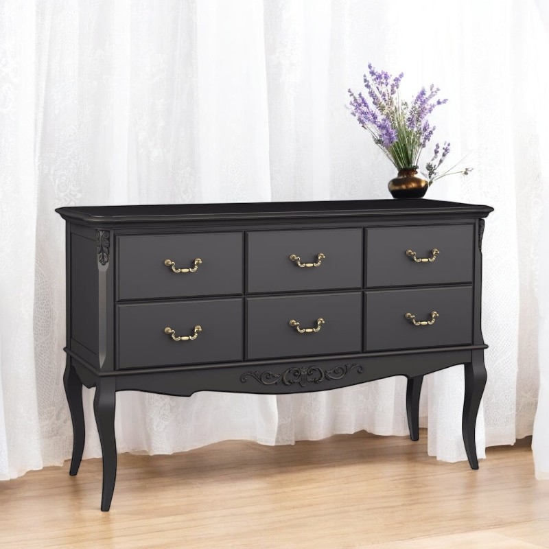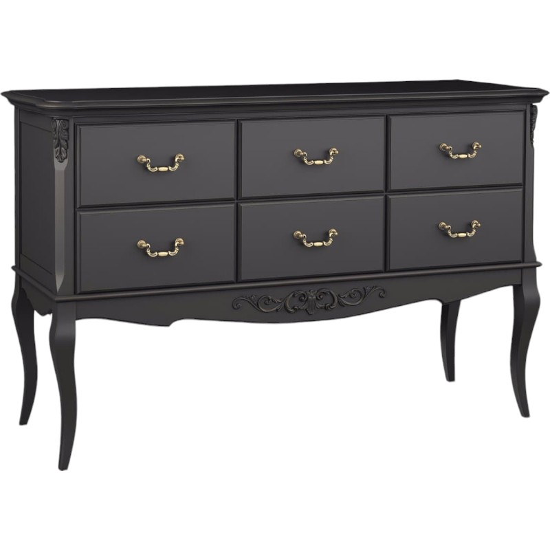 Консоль Marlette (Aletan, арт. В906BL) с шестью ящиками — изящное решение для вашего интерьера в классическом или провансальском стиле. Модель сочетает в себе утончённый дизайн и практичность, создавая уютную и гармоничную атмосферу в интерьере. Консоль изготовлена из массива бука, МДФ и берёзовой фанеры, что обеспечивает прочность конструкции и долгий срок службы. Многослойная эмалевая отделка в черном цвете (RAL 9005) придаёт изделию благородный внешний вид и защищает поверхность от внешних воздействий.