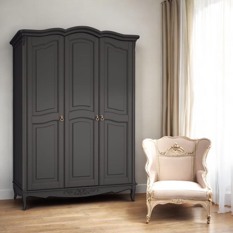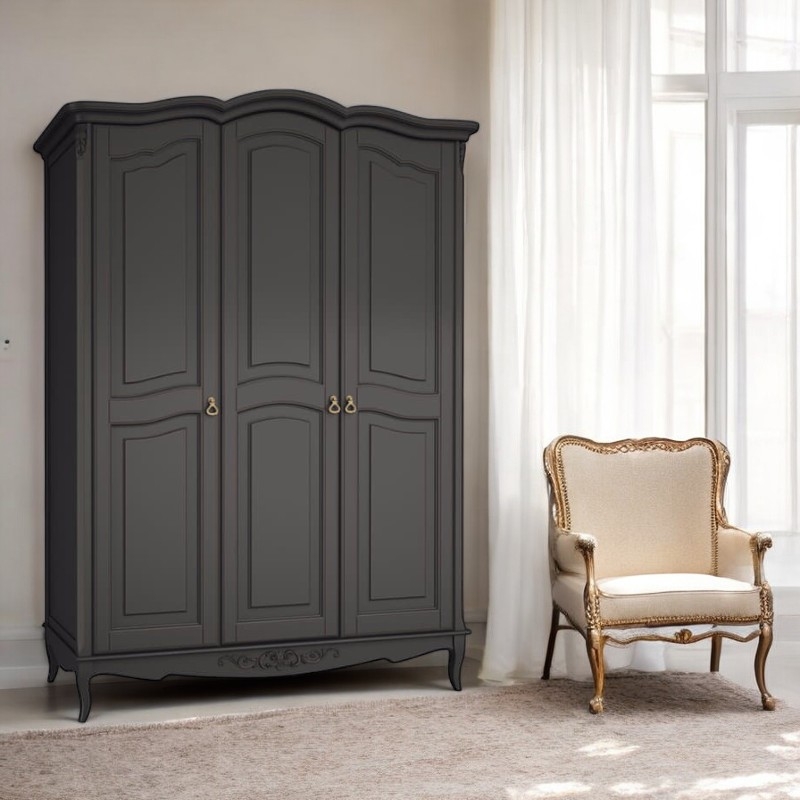 Стильный трехдверный шкаф Marlette (Aletan, арт. В803BL) — изящное решение для вашего интерьера в классическом или провансальском стиле. Модель сочетает в себе утончённый дизайн и практичность, создавая уютную и гармоничную атмосферу в интерьере. Шкаф изготовлен из массива бука, МДФ и берёзовой фанеры, что обеспечивает прочность конструкции и долгий срок службы. Многослойная эмалевая отделка в черном цвете (RAL 9005) придаёт изделию благородный внешний вид и защищает поверхность от внешних воздействий.