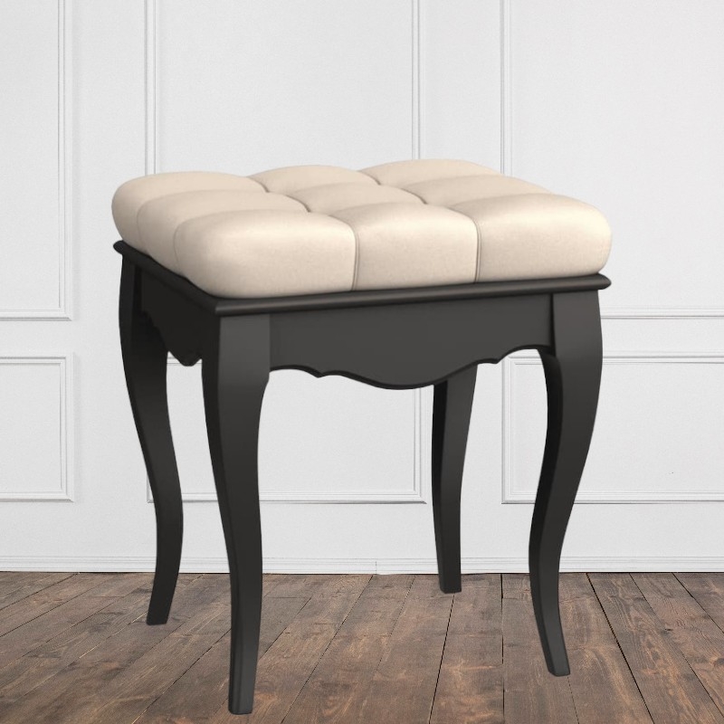 Пуф Marlette (Aletan, арт. В107BL) — изящное решение для вашего интерьера в классическом или провансальском стиле. Модель сочетает в себе утончённый дизайн и практичность, создавая уютную и гармоничную атмосферу в интерьере. Пуф изготовлен из массива бука, МДФ и берёзовой фанеры, что обеспечивает прочность конструкции и долгий срок службы. Многослойная эмалевая отделка в черном цвете (RAL 9005) придаёт изделию благородный внешний вид и защищает поверхность от внешних воздействий.