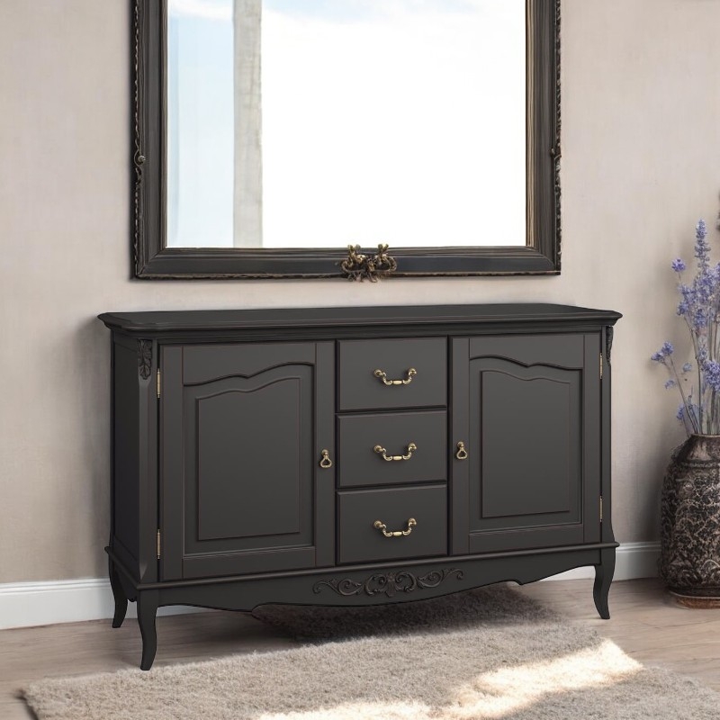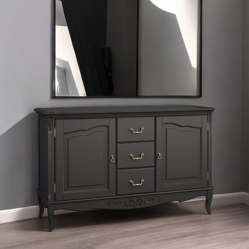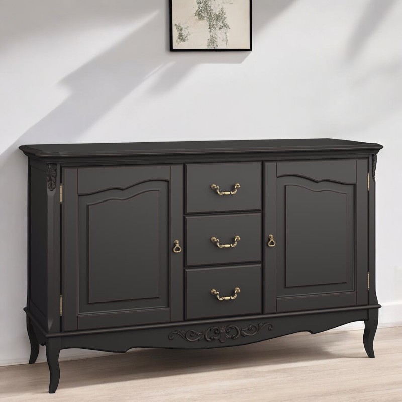 Прилавок Marlette (Aletan, арт. В403BL) с тремя ящиками и двумя дверцами — изящное решение для вашего интерьера в классическом или провансальском стиле. Модель сочетает в себе утончённый дизайн и практичность, создавая уютную и гармоничную атмосферу в интерьере. Прилавок изготовлена из массива бука, МДФ и берёзовой фанеры, что обеспечивает прочность конструкции и долгий срок службы. Многослойная эмалевая отделка в черном цвете (RAL 9005) придаёт изделию благородный внешний вид и защищает поверхность от внешних воздействий.