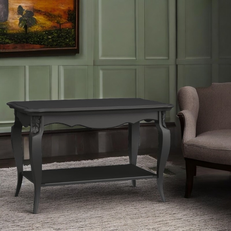 Журнальный прямоугольный стол Marlette (Aletan, арт. B102BL) — изящное решение для вашего интерьера в классическом или провансальском стиле. Модель сочетает в себе утончённый дизайн и практичность, создавая уютную и гармоничную атмосферу в интерьере. Столик изготовлен из массива бука, МДФ и берёзовой фанеры, что обеспечивает прочность конструкции и долгий срок службы. Многослойная эмалевая отделка в черном цвете (RAL 9005) придаёт изделию благородный внешний вид и защищает поверхность от внешних воздействий.
