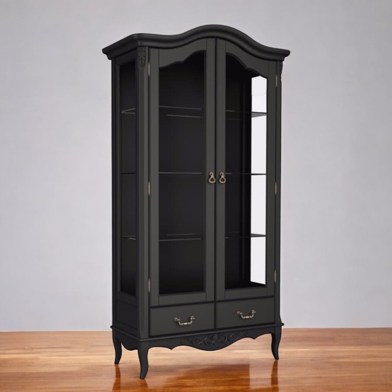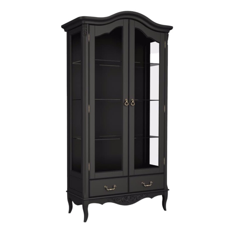 Двухдверная витрина Marlette (Aletan, арт. В603BL) с двумя ящиками — изящное решение для вашего интерьера в классическом или провансальском стиле. Модель сочетает в себе утончённый дизайн и практичность, создавая уютную и гармоничную атмосферу в интерьере. Витрина изготовлена из массива бука, МДФ и берёзовой фанеры, что обеспечивает прочность конструкции и долгий срок службы. Многослойная эмалевая отделка в черном цвете (RAL 9005) придаёт изделию благородный внешний вид и защищает поверхность от внешних воздействий.