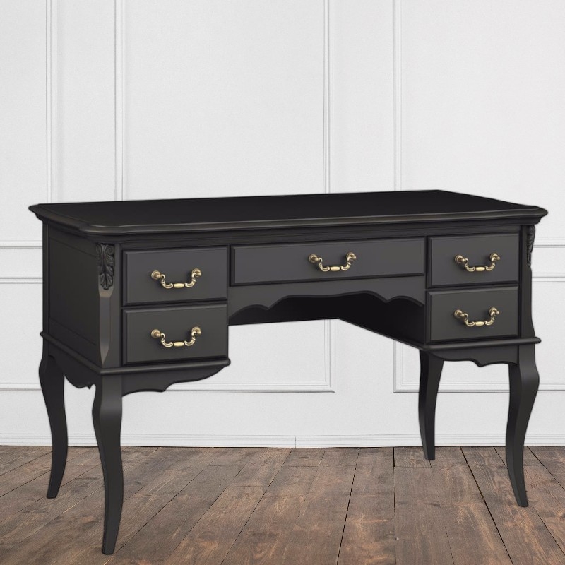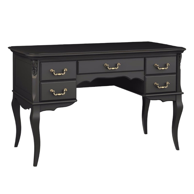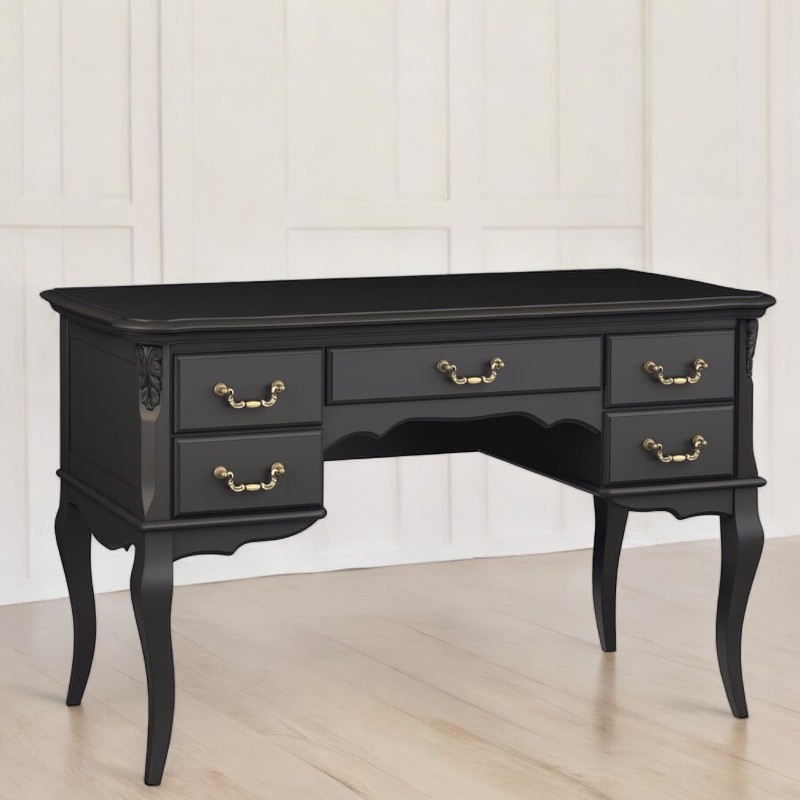 Удобный и красивый большой письменный стол из коллекции Marlette (Aletan, арт. В706BL) с пятью ящиками и четырьмя полками — изящное решение для вашего интерьера в классическом или провансальском стиле. Модель сочетает в себе утончённый дизайн и практичность, создавая уютную и гармоничную атмосферу в интерьере. Витрина изготовлена из массива бука, МДФ и берёзовой фанеры, что обеспечивает прочность конструкции и долгий срок службы. Многослойная эмалевая отделка в черном цвете (RAL 9005) придаёт изделию благородный внешний вид и защищает поверхность от внешних воздействий.