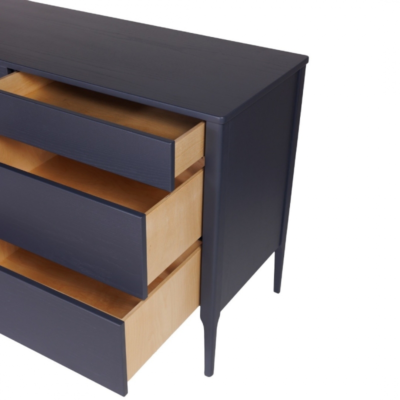 Комод Soho (Vissam, арт. 11022) с шестью ящиками, в цвете Графит — элегантное решение для спальни в неоклассическом стиле. Комод Виссам Сохо изготовлен из массива дерева и МДФ с многослойной эмалевой отделкой, гарантирующей долговечность. Оптимальные размеры позволяют органично вписать комод в интерьер. Используется фурнитура с плавным закрыванием и доводчики.