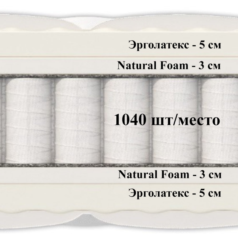 - Эрголатекс плотностью HR3535. Инновационный пенный материал с хорошей вентиляцией и волнообразной поверхностью, для создания массажного эффекта. Придает матрасу мягкость и умеренную упругость — 5 см