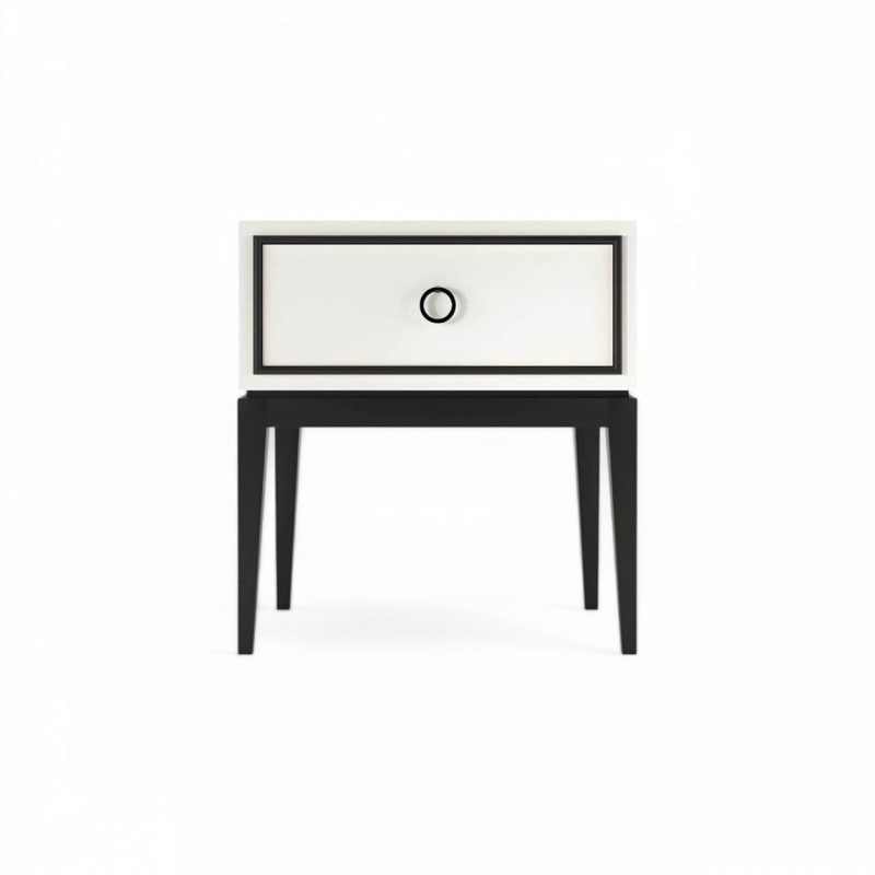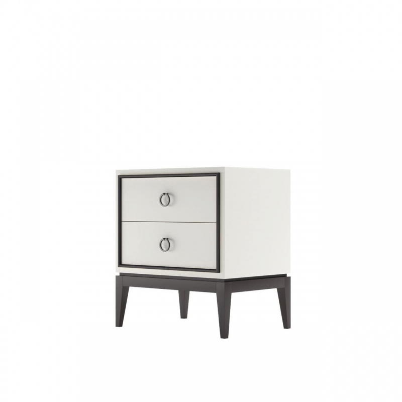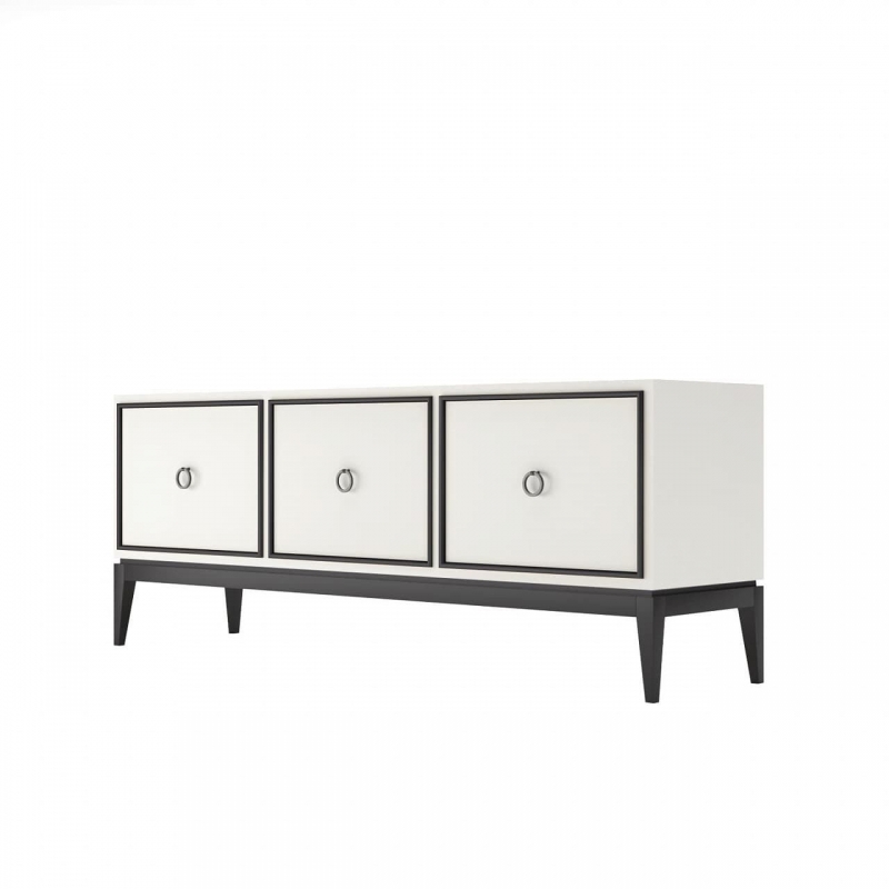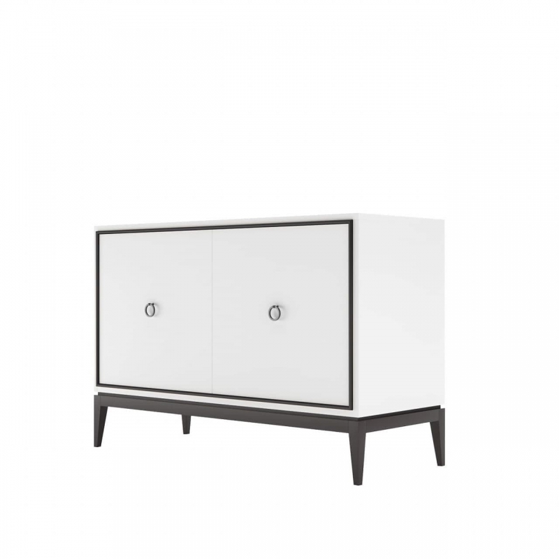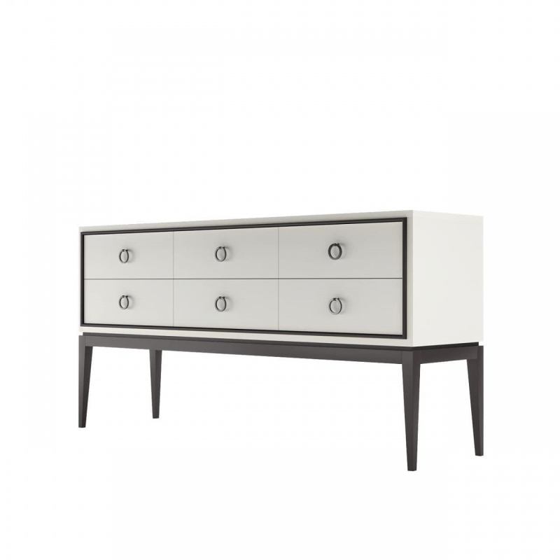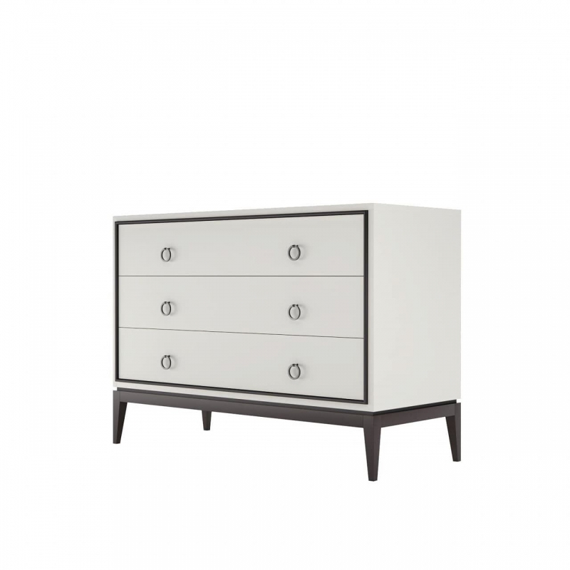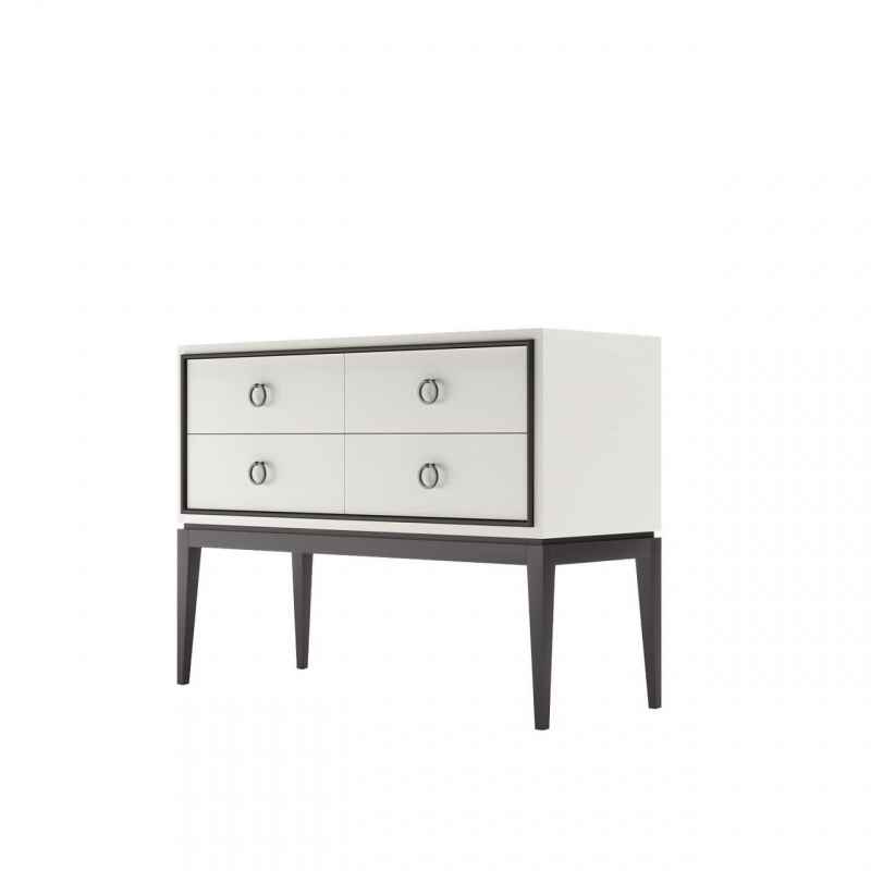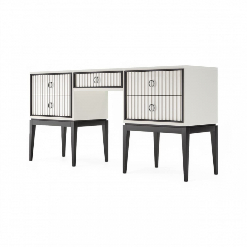 Кабинет выполнен в отделке: комбинация эмали Молочного цвета с черной декорацией на фасад. Ножки предметов коллекции окрашены чёрный цвет.