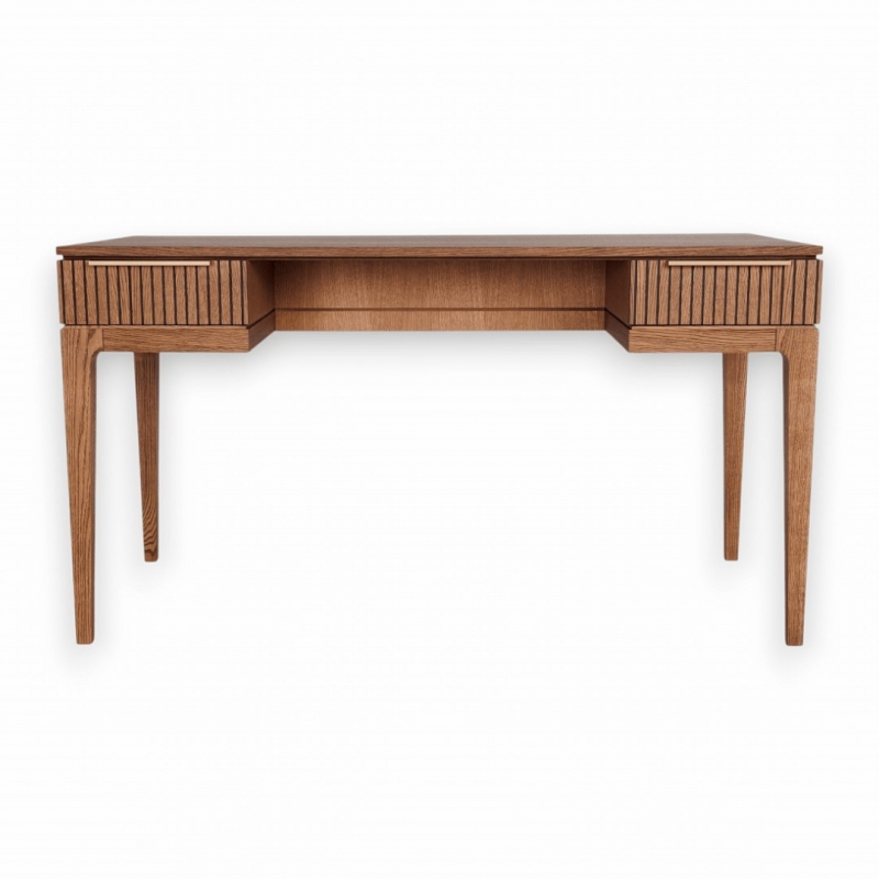 Чёткие линии, продуманная симметрия и визуальная сдержанность делают кабинет Bryce актуальным решением для интерьеров в современной, неоклассической и минималистичной стилистике. Фасады с рельефной рейкой формируют выразительный ритм и глубину поверхности, создавая эффект лёгкой тени и движения при изменении освещения. Этот архитектурный приём подчёркивает структуру мебели и придаёт ей визуальную сложность без избыточного декора.