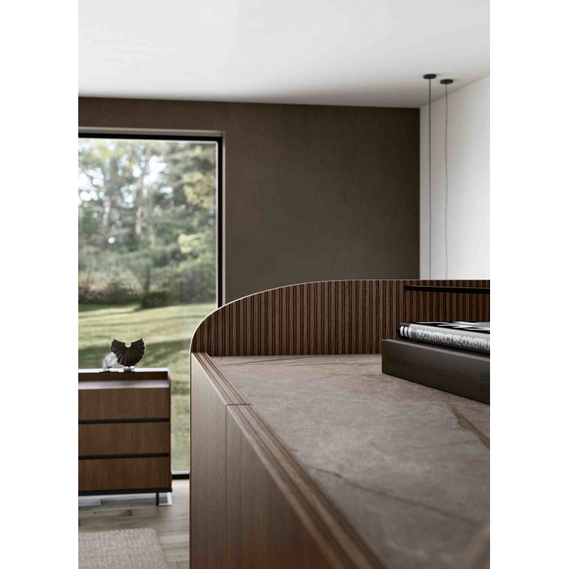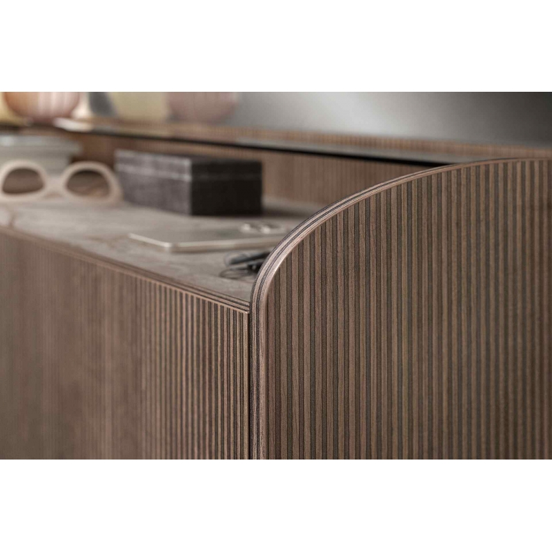 Отделка Honey Ribbed на боковых и задних панелях (18 мм): Придает буфету теплоту и текстуру, делая его уникальным и привлекательным.