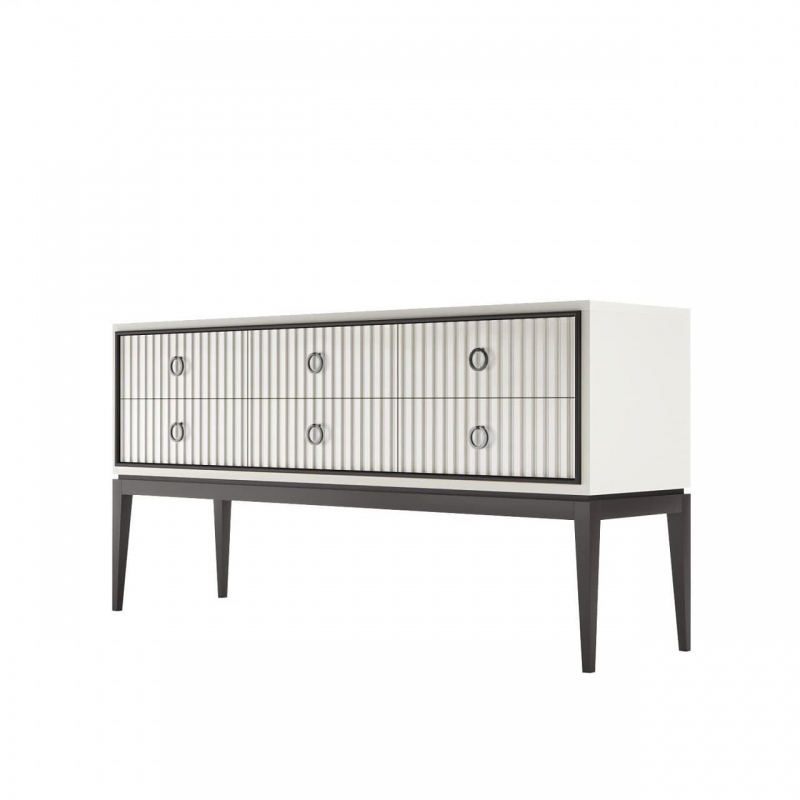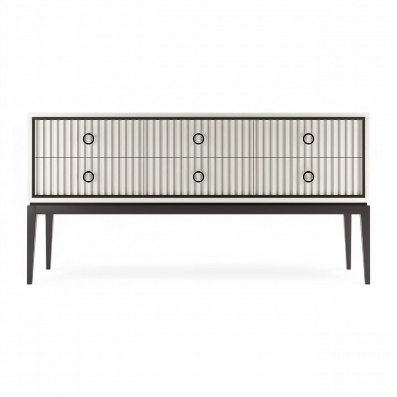 Низкий комод из коллекции Ницца бренда Classico Italiano, арт. 8046/L/BL/BL. Дизайн комода выполнен в американском варианте стиля Ар-деко. Комод на высоких ножках, выполненного из качественного массива бука и дополняется МДФ. Комод оснащен 6 выдвижными ящиками с доводчиками. Фасадная часть ящиков комода украшена каннелюрами.