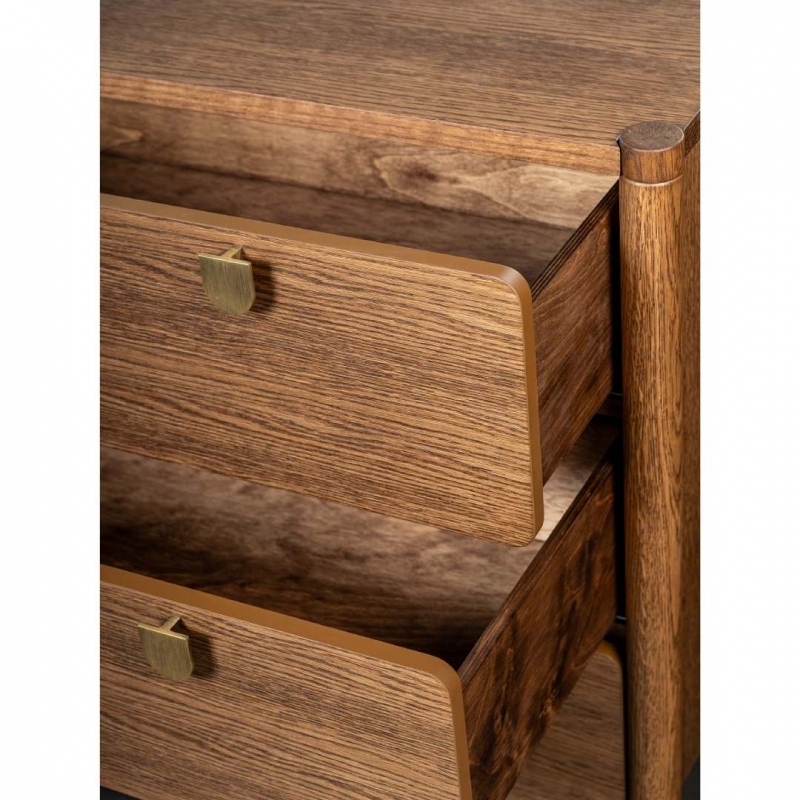Комод изготовлен из массива дуба, МДФ и шпона дуба, что обеспечивает прочность конструкции и долговечность эксплуатации.