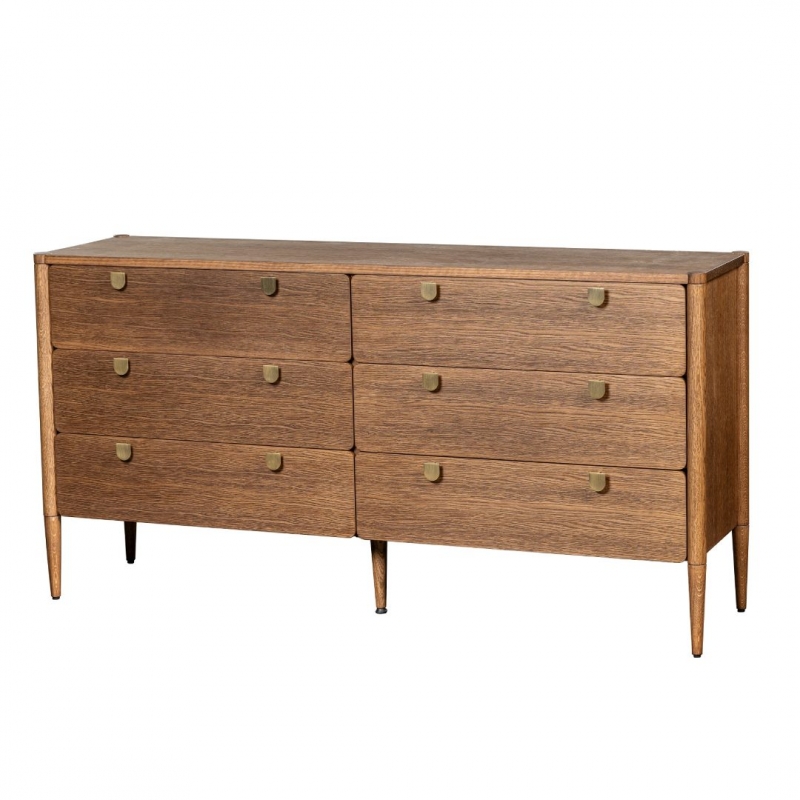 Дизайнерский низкий комод из коллекции Gven бренда Vissam (арт. 26017) выполнен в минималистичном стиле. Комод Гвен на высоких ножках оснащён 6 выдвижными ящиками с доводчиками, обеспечивающими плавное и бесшумное закрывание. Изящные ручки из натуральной латуни добавляют изысканности и служат надежной и приятной в использовании деталью.