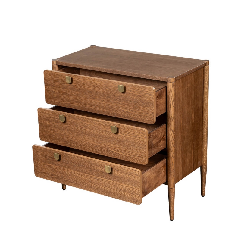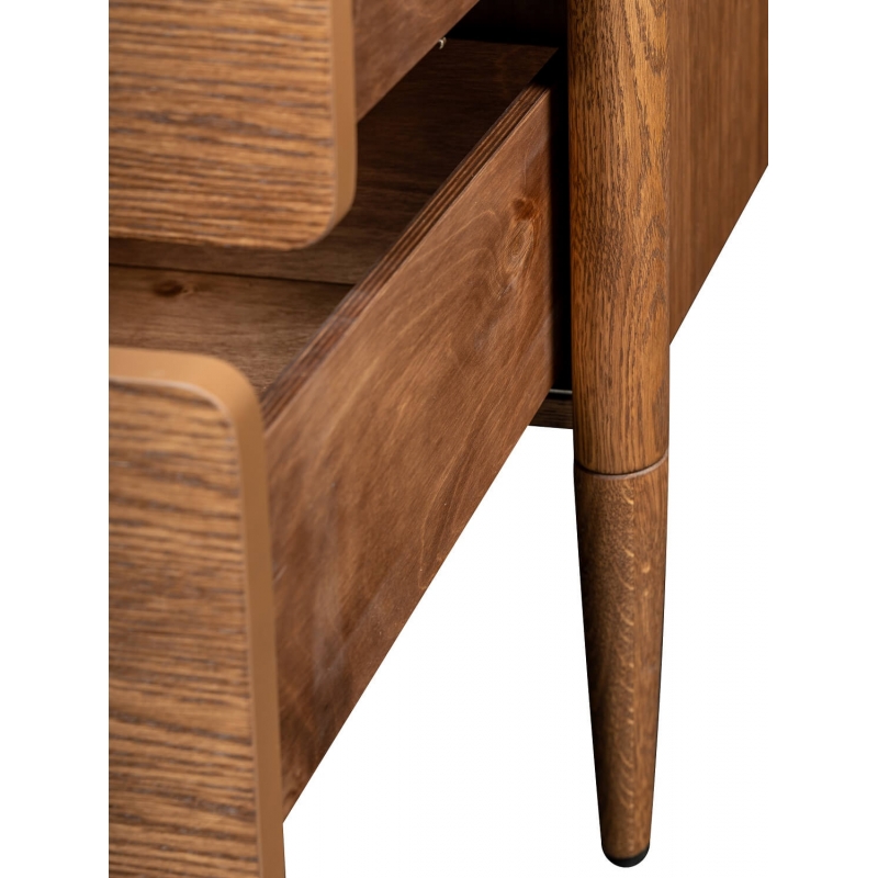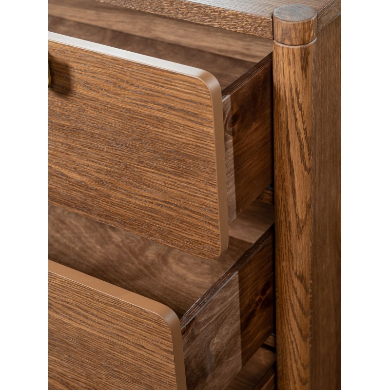 Комод изготовлен из массива дуба, МДФ и шпона дуба, что обеспечивает прочность конструкции и долговечность эксплуатации.