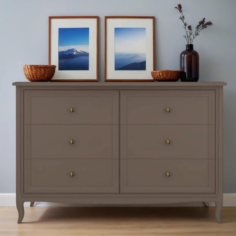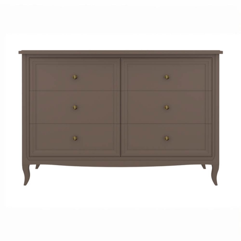 Комод Majessa (Aletan, арт. М406Q) с шестью ящиками, в коричневом цвете — элегантное решение для спальни в неоклассическом стиле. Комод Алетан Маджесса изготовлен из массива дерева и МДФ с многослойной эмалевой отделкой, гарантирующей долговечность.