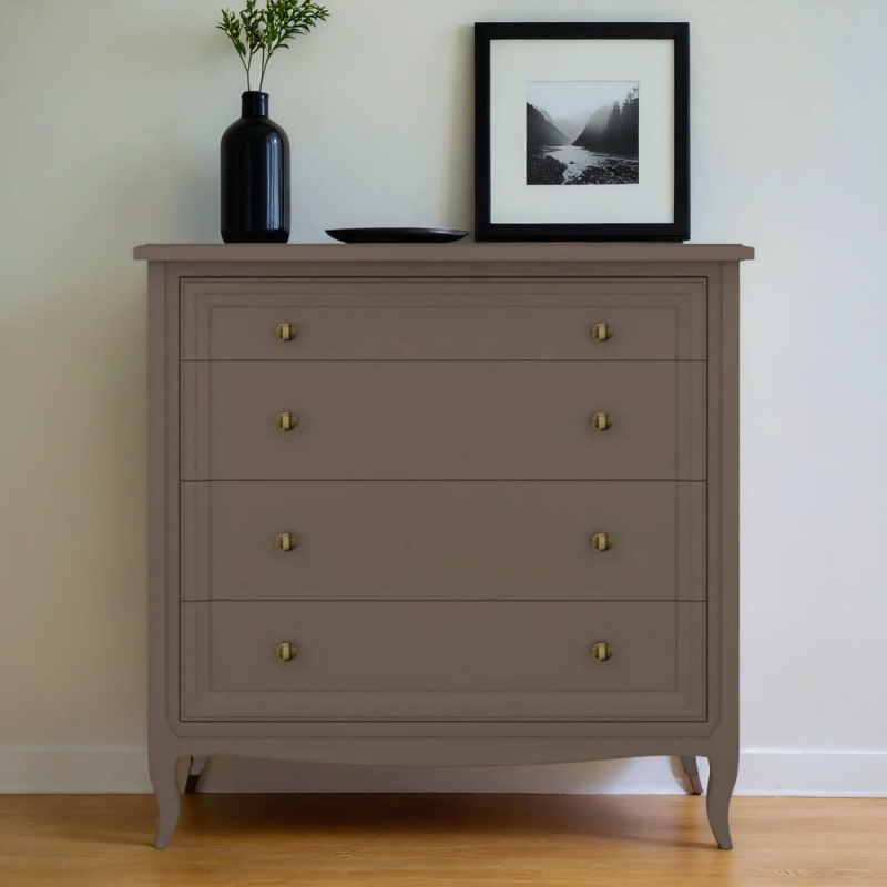 Комод Majessa (Aletan, арт. М404Q) с четырьмя ящиками, в коричневом цвете — элегантное решение для спальни в неоклассическом стиле. Комод Алетан Маджесса изготовлен из массива дерева и МДФ с многослойной эмалевой отделкой, гарантирующей долговечность.