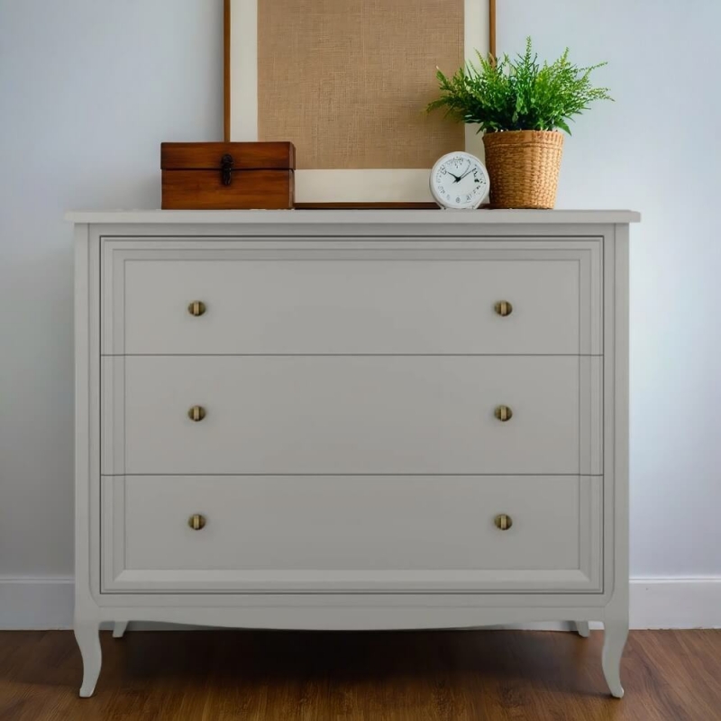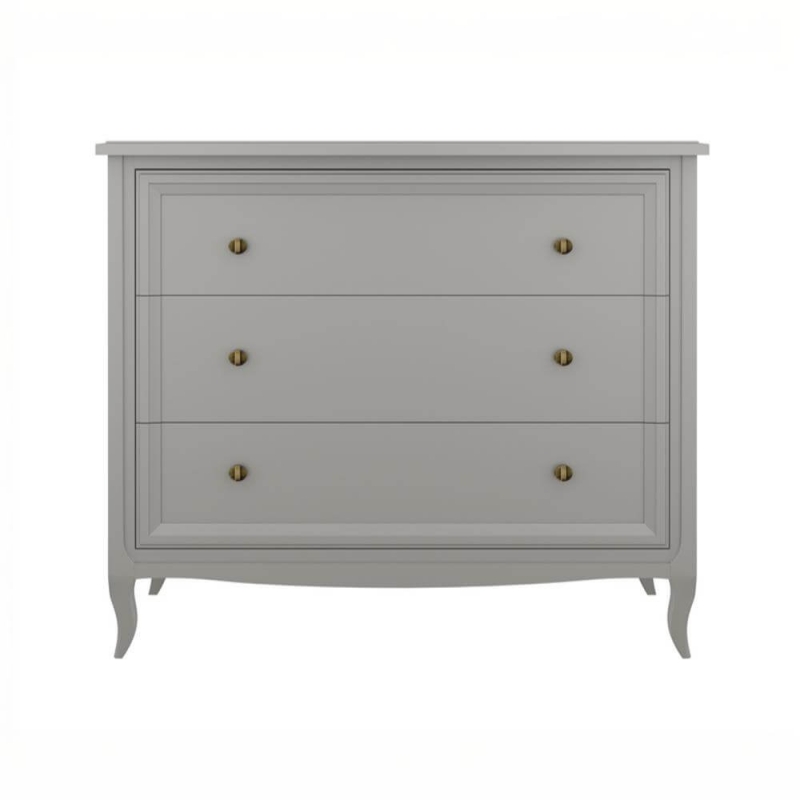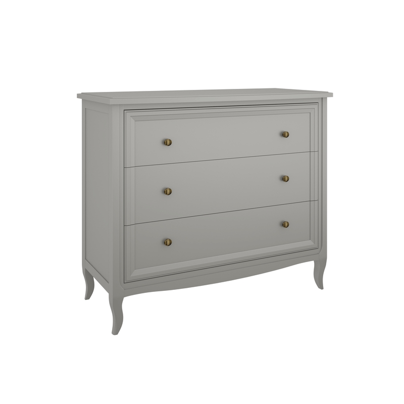 Комод Majessa (Aletan, арт. М401G) с тремя ящиками, в сером цвете — элегантное решение для спальни в неоклассическом стиле. Комод Алетан Маджесса изготовлен из массива дерева и МДФ с многослойной эмалевой отделкой, гарантирующей долговечность.