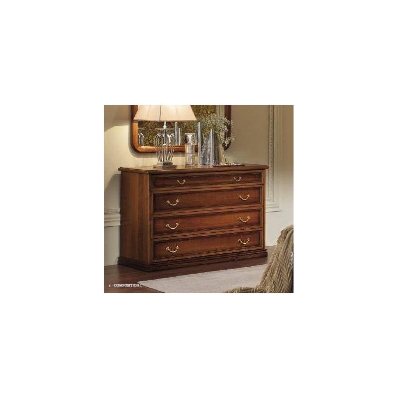 Комод низкий коллекции Nostalgia Noce итальянской фабрики Camelgroup в цвете Орех – 085CMS.20NO. Комод Кэмолгруп Ностальжи, в классическом стиле, имеет четыре вместительных выдвижных ящика с доводчиками. Удобен для хранения белья. Поставляется разобранным.