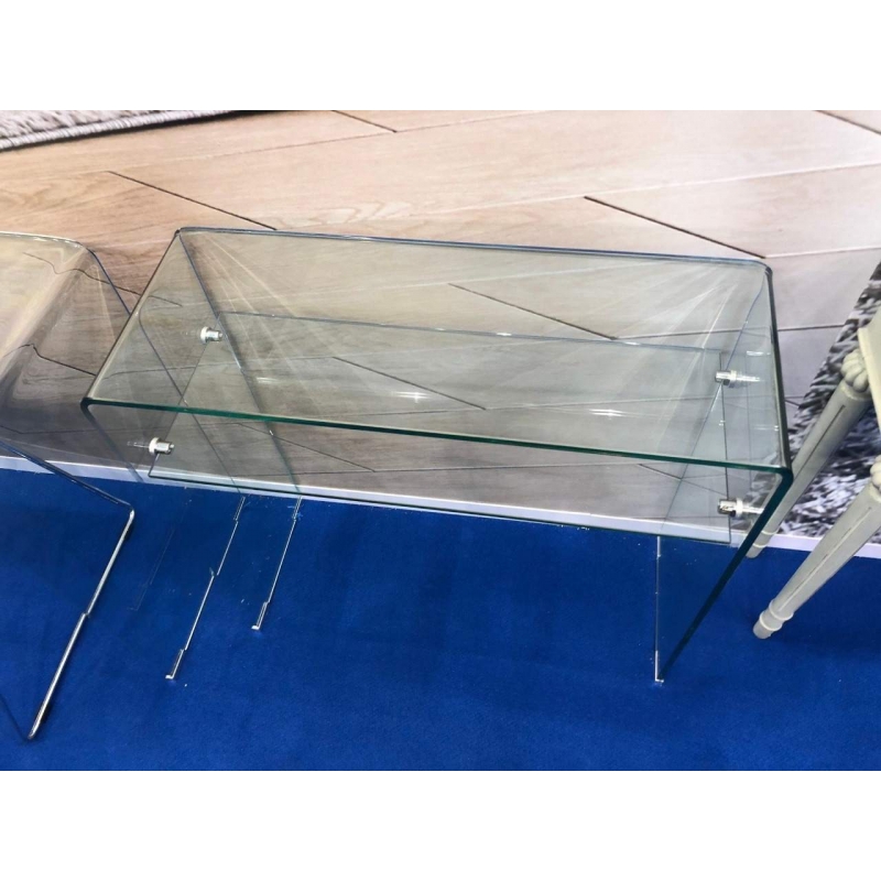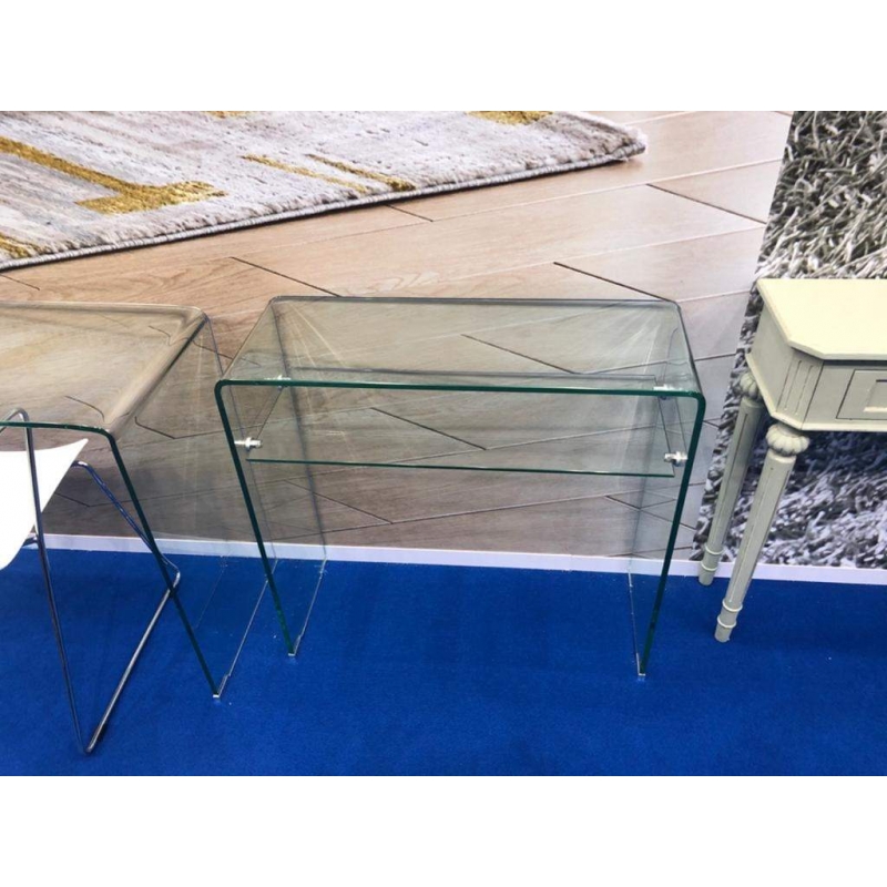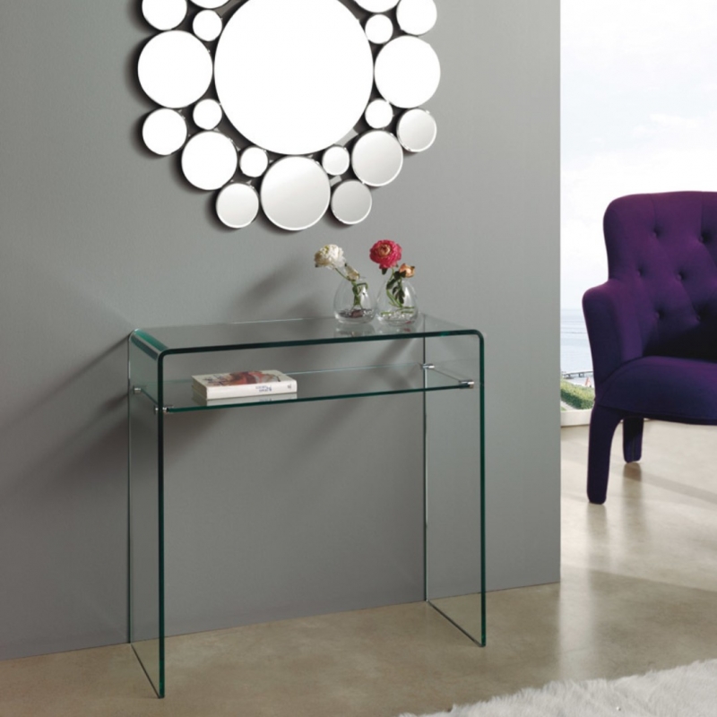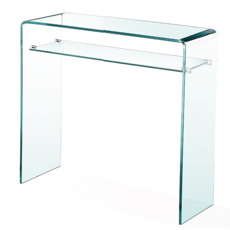 Консоль Лайт бренда Qwerica Home (Q-Home), арт. размером 80х30 см, . Консоль выполнена из гнутого каленого стекла толщиной 12мм. Оснащена дополнительной полочкой. Размер: 80х30 см, высота