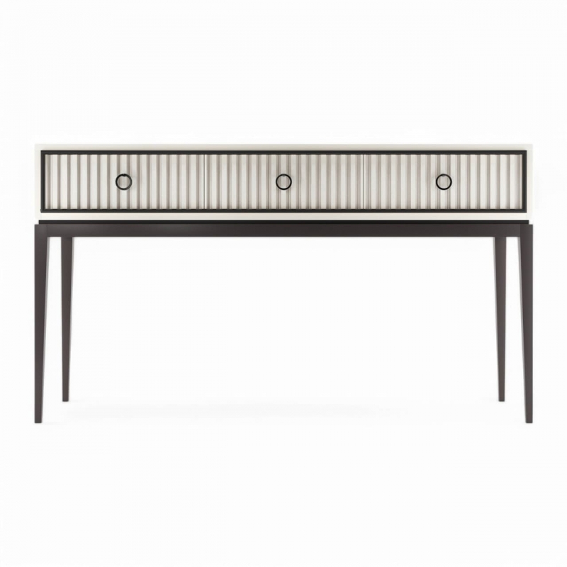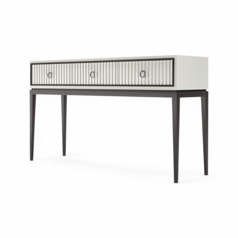 Элегантная консоль Ницца бренда Classico Italiano, арт. 8048/L/BL/BL. Выполнен в американском варианте стиля Ар-деко. Консоль на высоких ножках, выполненная из качественного массива бука и дополняется МДФ. Консоль оснащена тремя выдвижными ящиками с доводчиками. Фасадная часть ящиков консоли украшена каннелюрами.