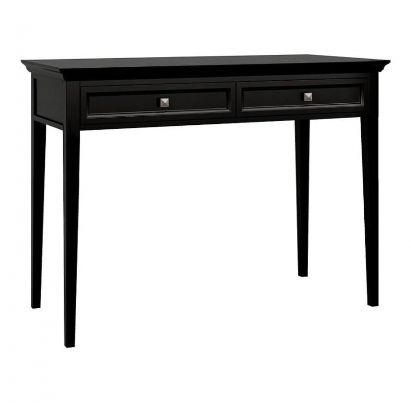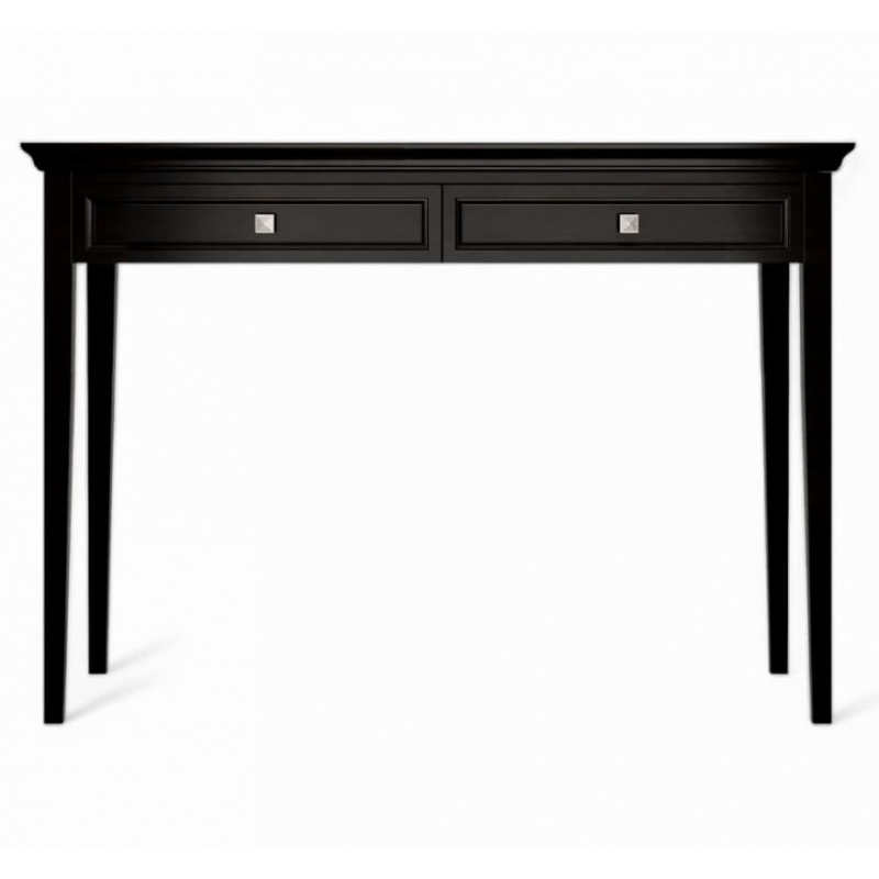 Консоль пристенная с двумя ящиками из коллекции Бруклин бренда Classico Italiano арт. 7019/BL. Консоль в неоклассическом американском стиле выполнена из натурального дерева и элементов MDF с отделкой полуматовым чёрным лаком. Ящики оснащены доводчиками плавного закрывания.