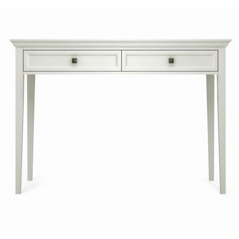 Дизайнерская консоль, туалетный столик с двумя ящиками из коллекции Бруклин бренда Classico Italiano, арт. 7019/L. Удобный вариант для прихожей, гостиной или спальни комнаты. Консоль выполнена в неоклассическом американском стиле, в светлом лаке – стильном, универсальном и практичном. Ящики снабжены доводчиками плавного закрывания. Материал: натуральное дерево и MDF. Высокие ножки визуально облегчают образ.