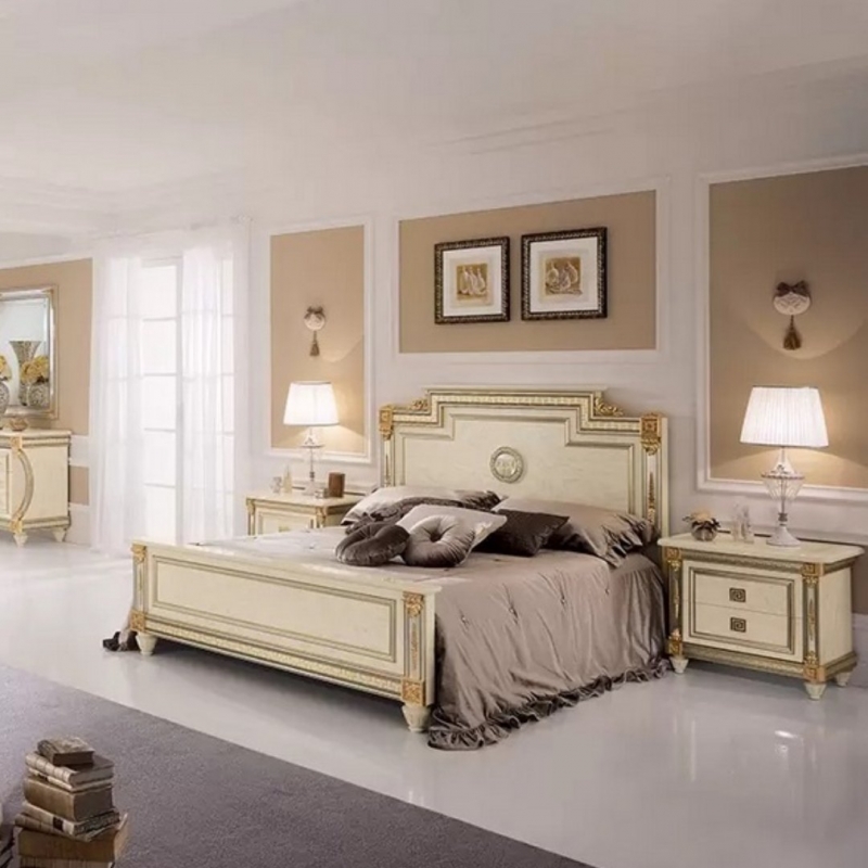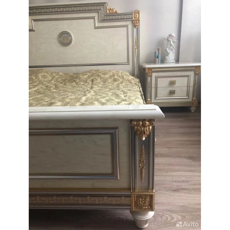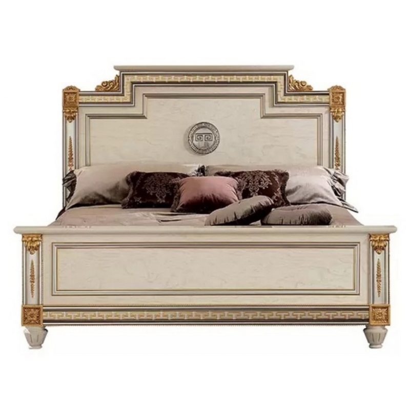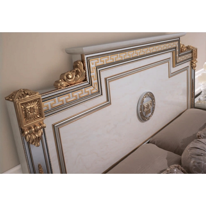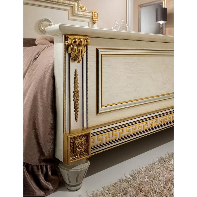 Итальянская кровать Liberty со спальным местом King Size 200×200 см от фабрики Arredo Classic (Арредо Классик). Роскошная кровать, выполненная в классическом итальянском стиле, сочетает элегантность форм, утончённую отделку и безупречное качество. Изголовье и изножье оформлены в благородном оттенке слоновой кости с изысканной текстурой мрамора. Декоративная шелкография, ручное сусальное золочение, позолоченная фурнитура и тонкая резьба по дереву придают модели неповторимый шарм.